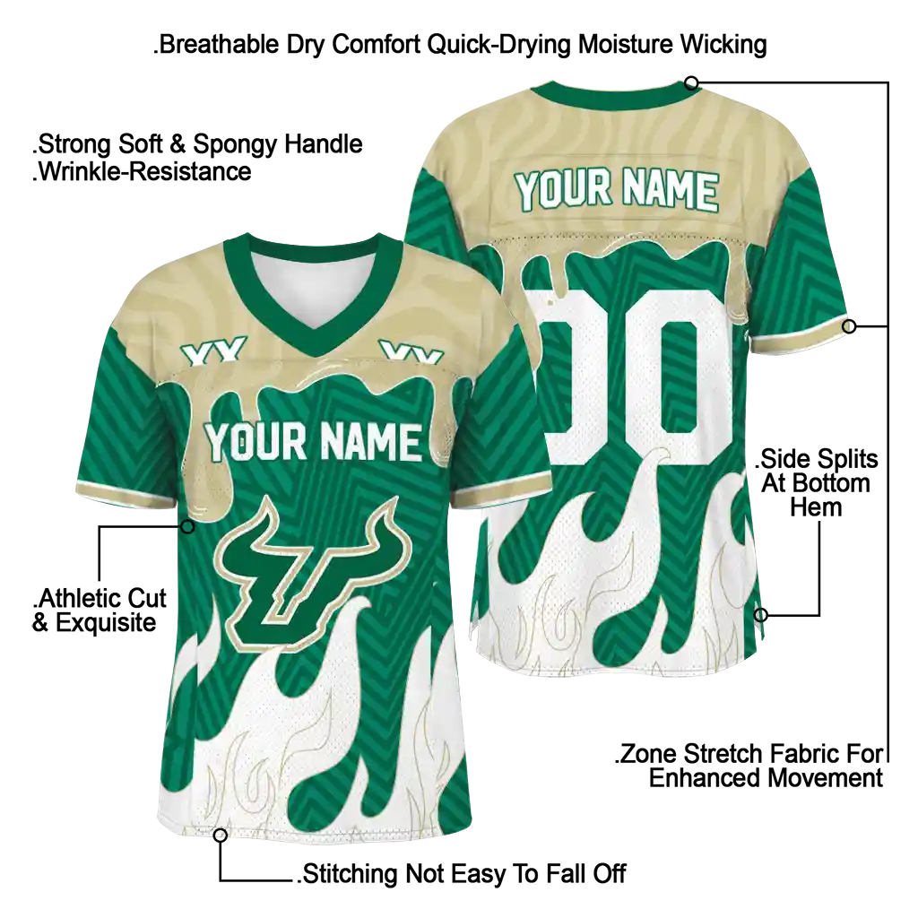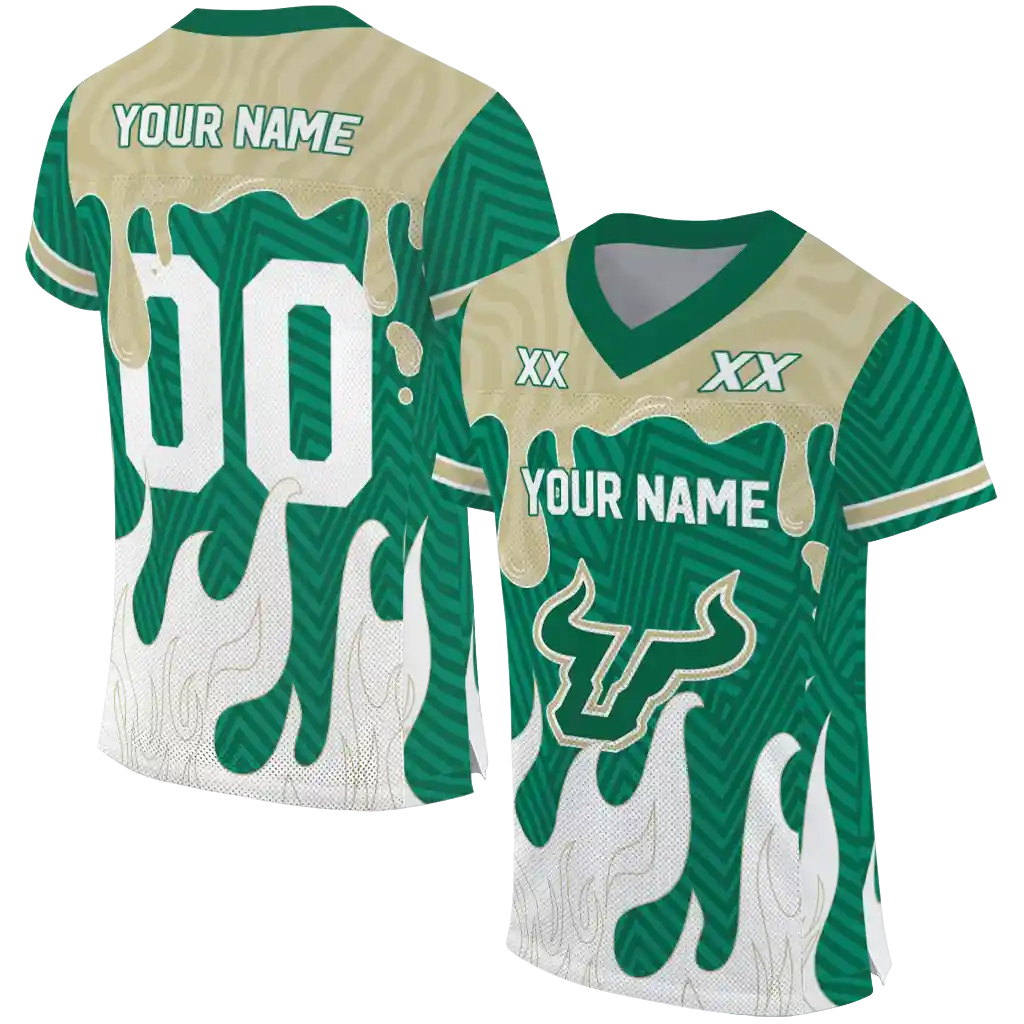 South Florida Bulls Jersey – Customized Dripping Flames Green White
