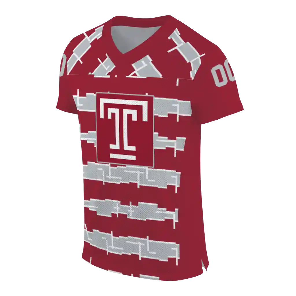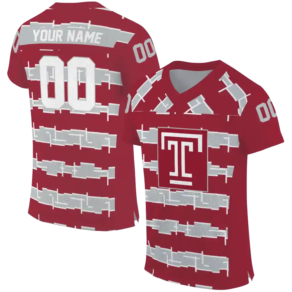 Temple Owls Jersey – Customized Layered Grids Red