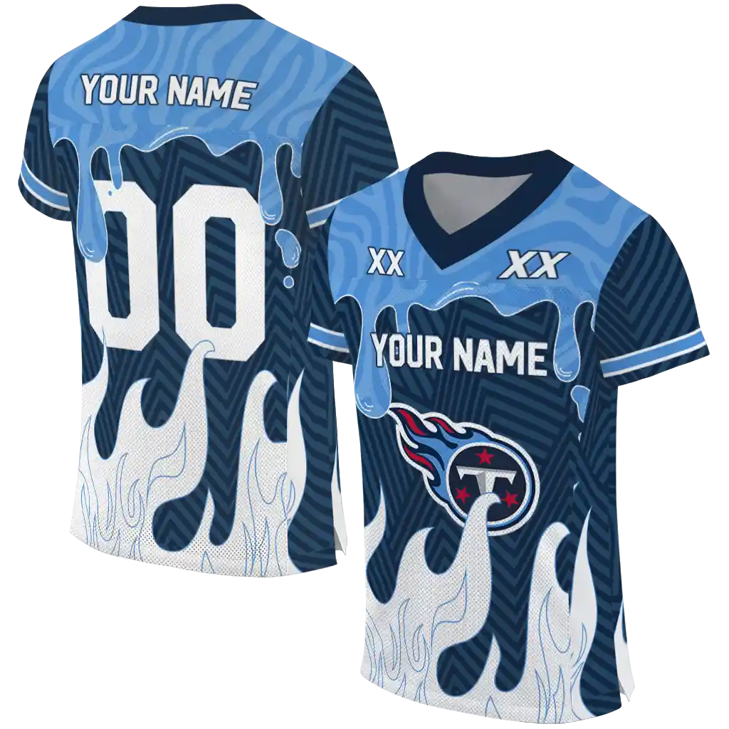 Tennessee Titans Jersey – Customized Dripping Flames Navy White