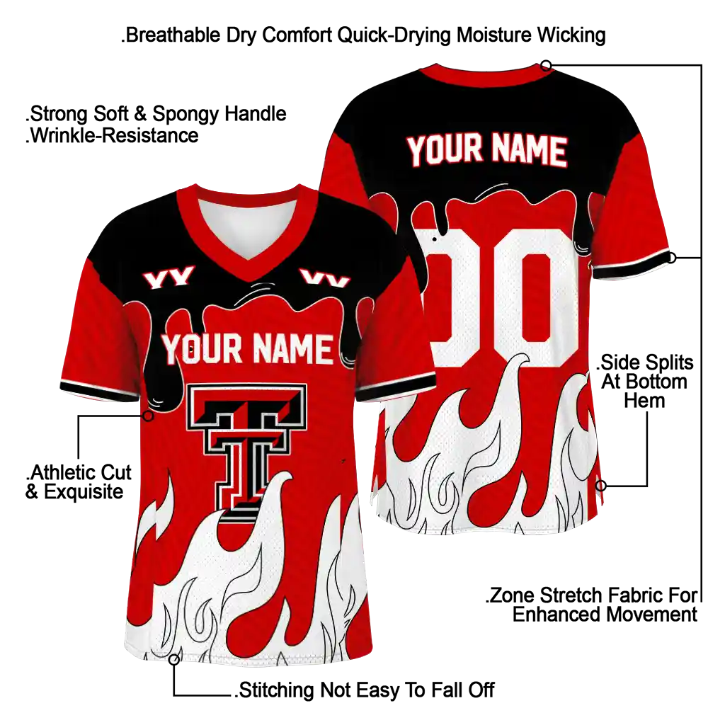 Texas Tech Red Raiders Jersey – Customized Dripping Flames Red White