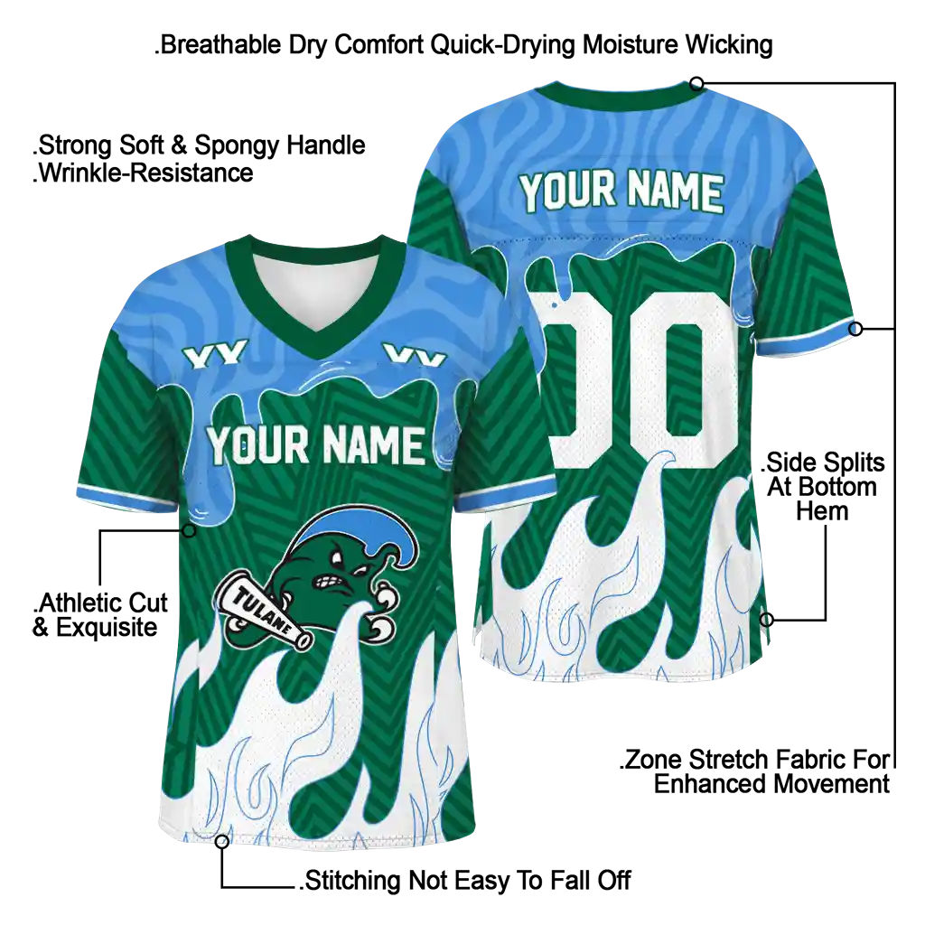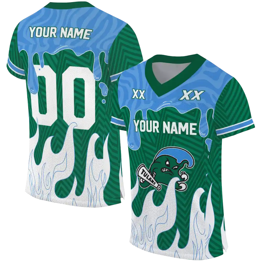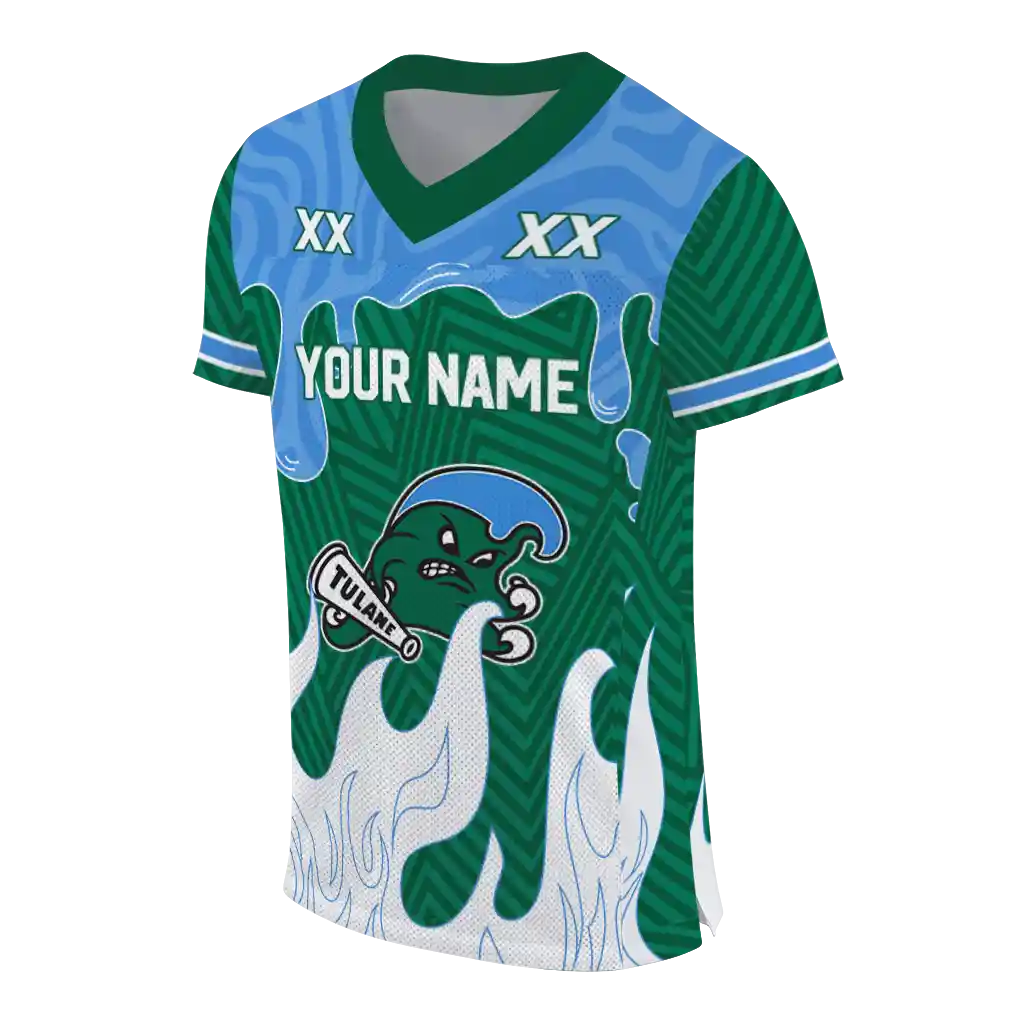 Tulane Green Wave Jersey – Customized Dripping Flames Green White
