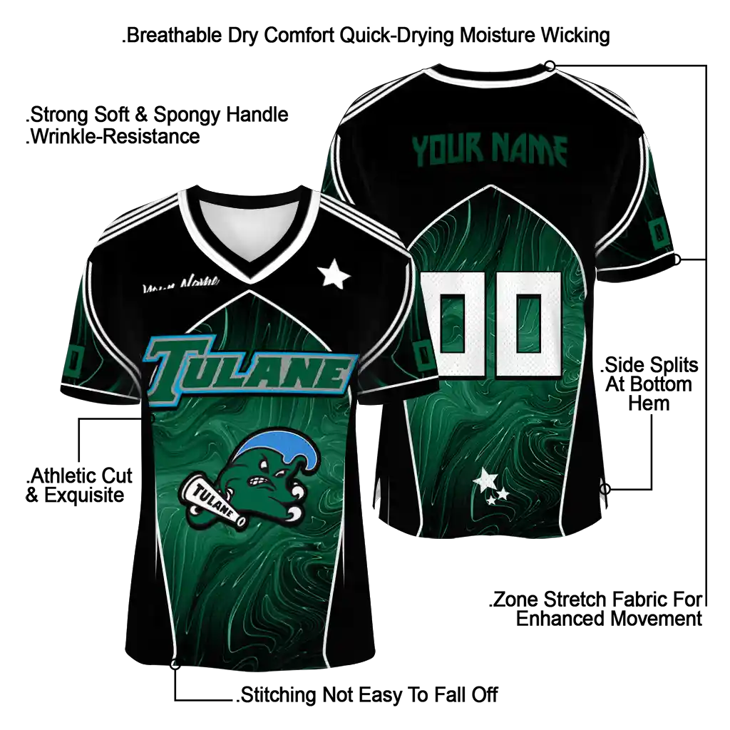 Tulane Green Wave Jersey – Customized Halftone Slant Green Black
