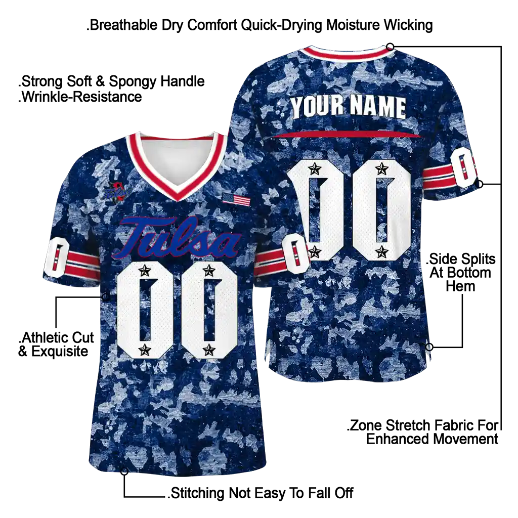 Tulsa Golden Hurricane Jersey – Customized Camouflage Abstract Blue