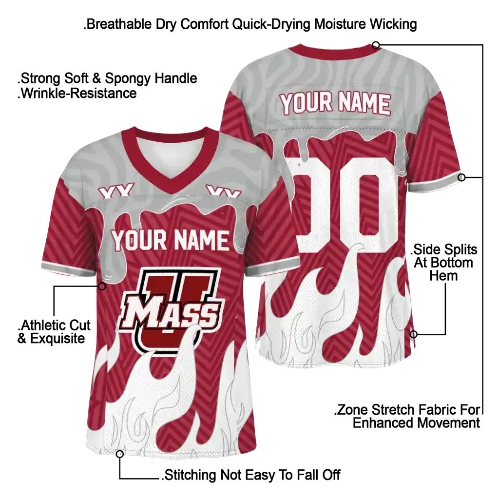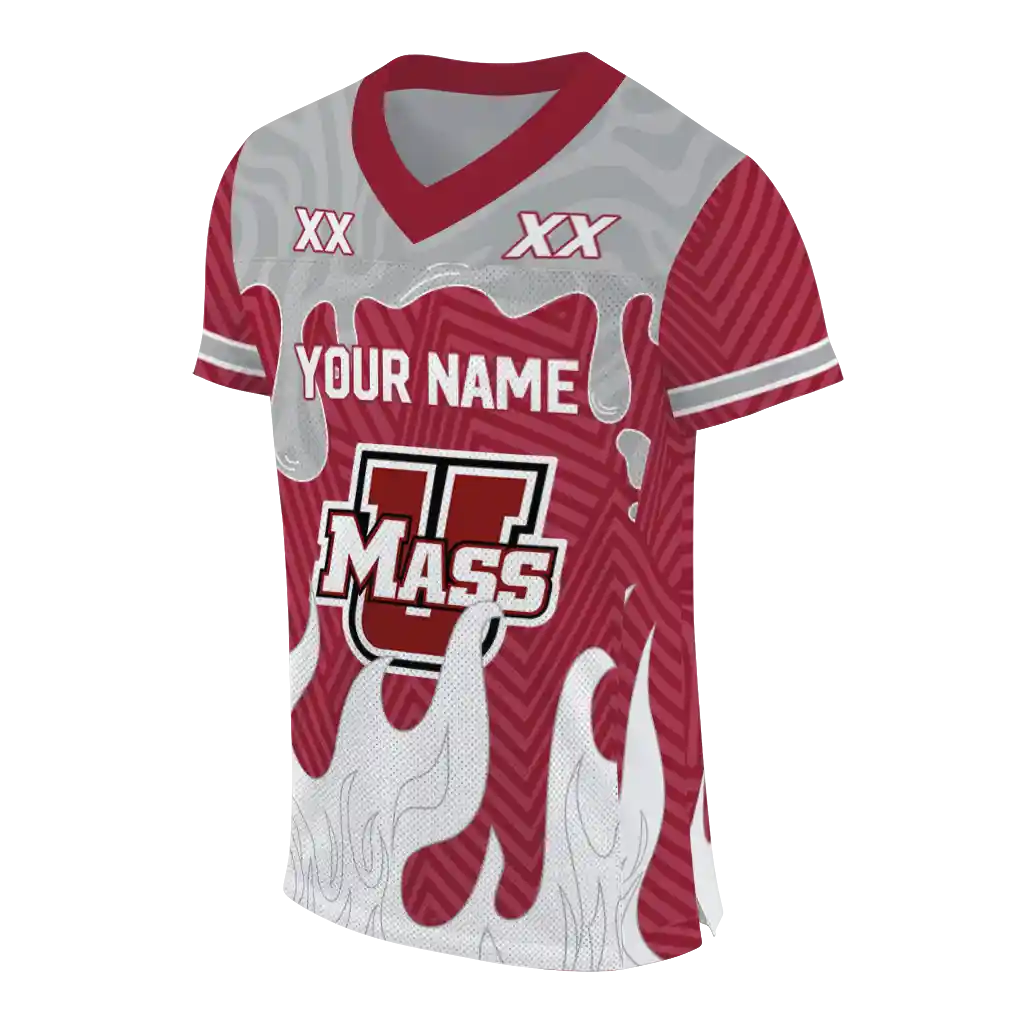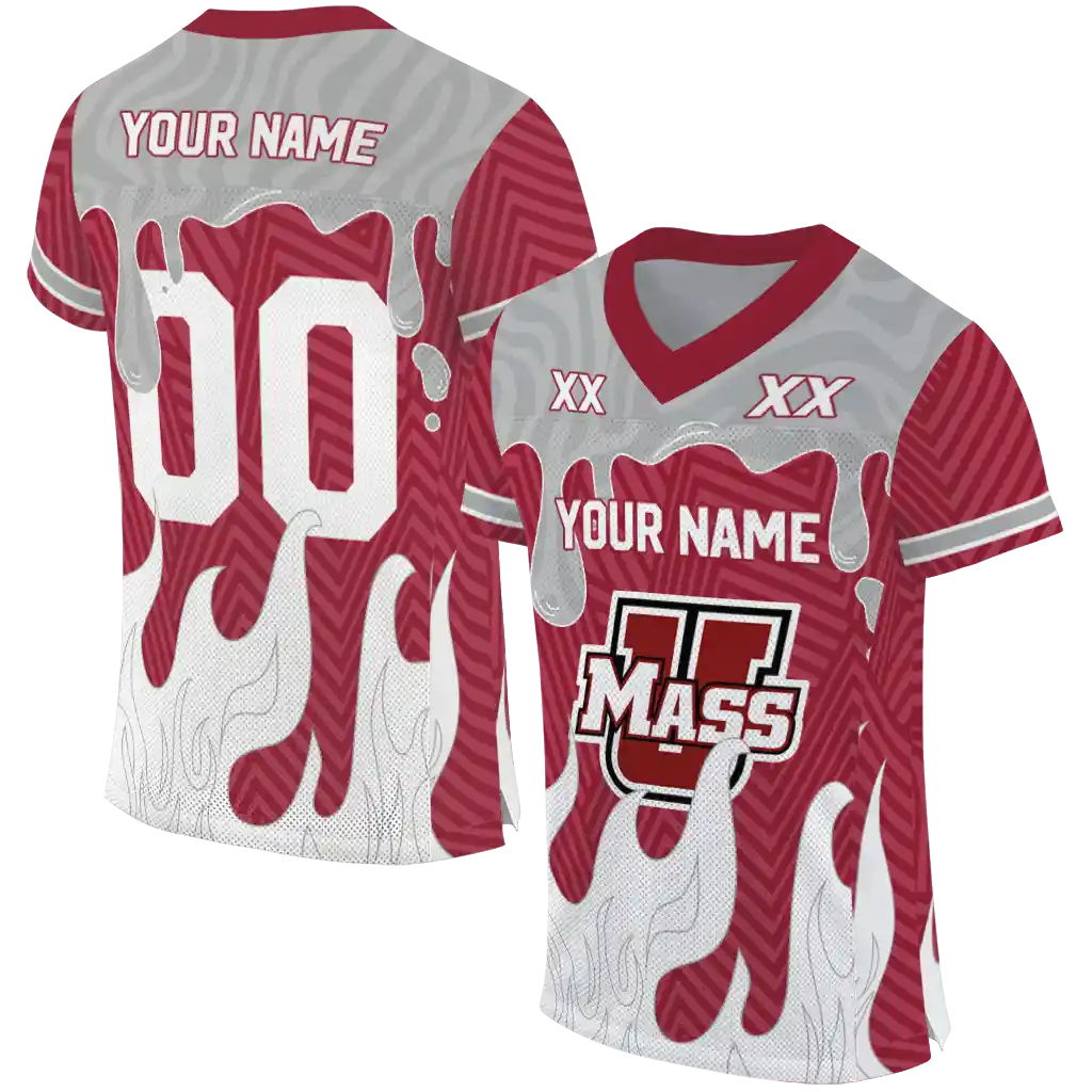 UMass Minutemen Jersey – Customized Dripping Flames Red White