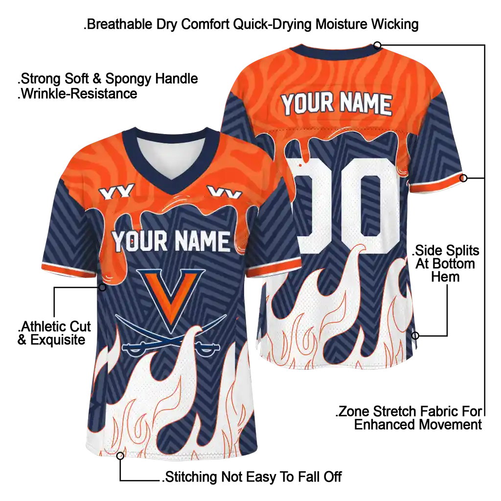 Virginia Cavaliers Jersey – Customized Dripping Flames Blue White
