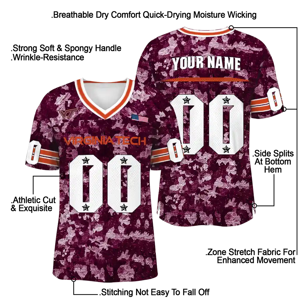 Virginia Tech Hokies Jersey – Customized Camouflage Abstract Maroon