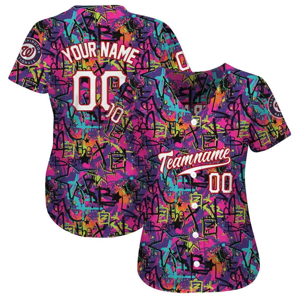 Washington Nationals Jersey – Customized Graffiti Tag Pink and Blue