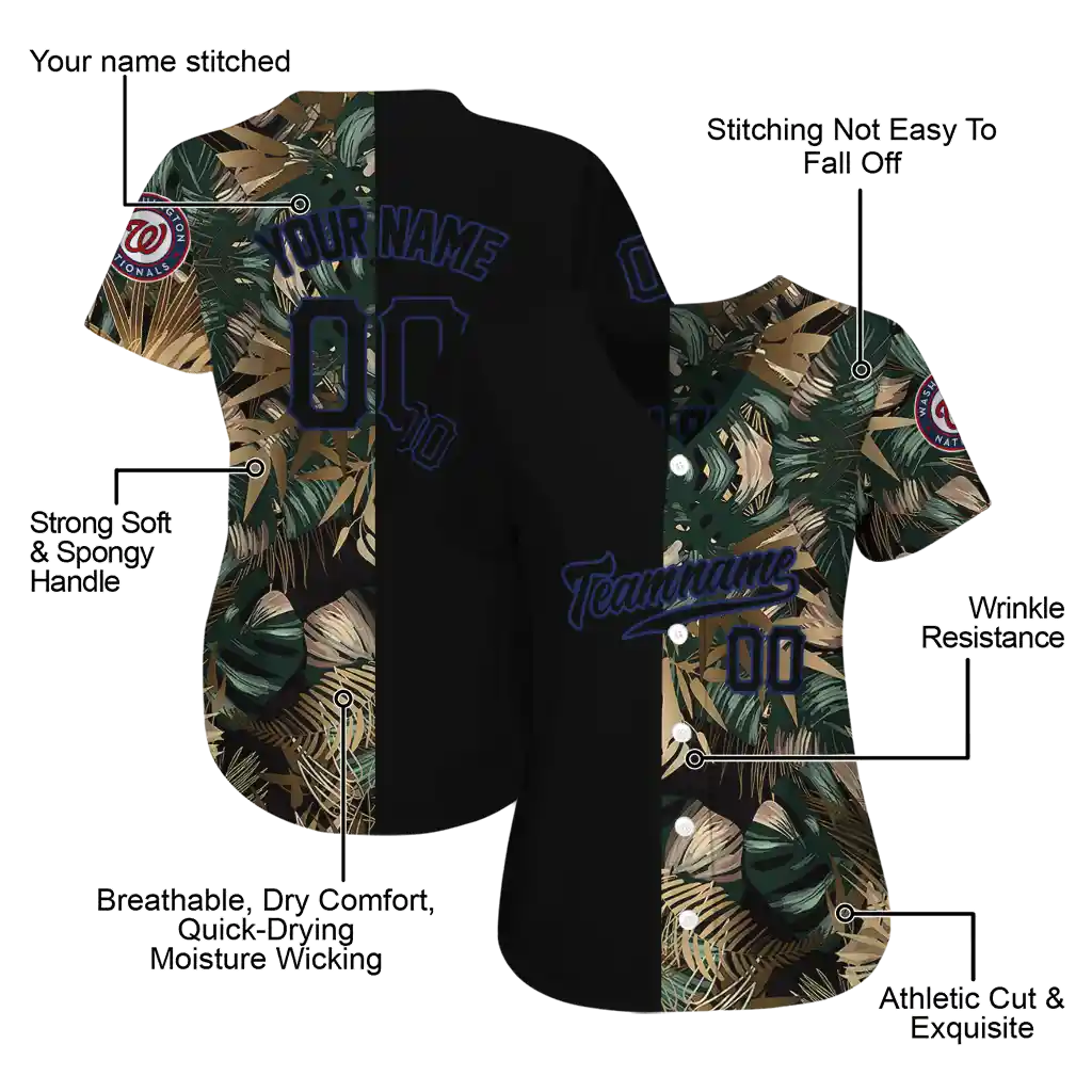 Washington Nationals Jersey – Customized Tropical Foliage Black