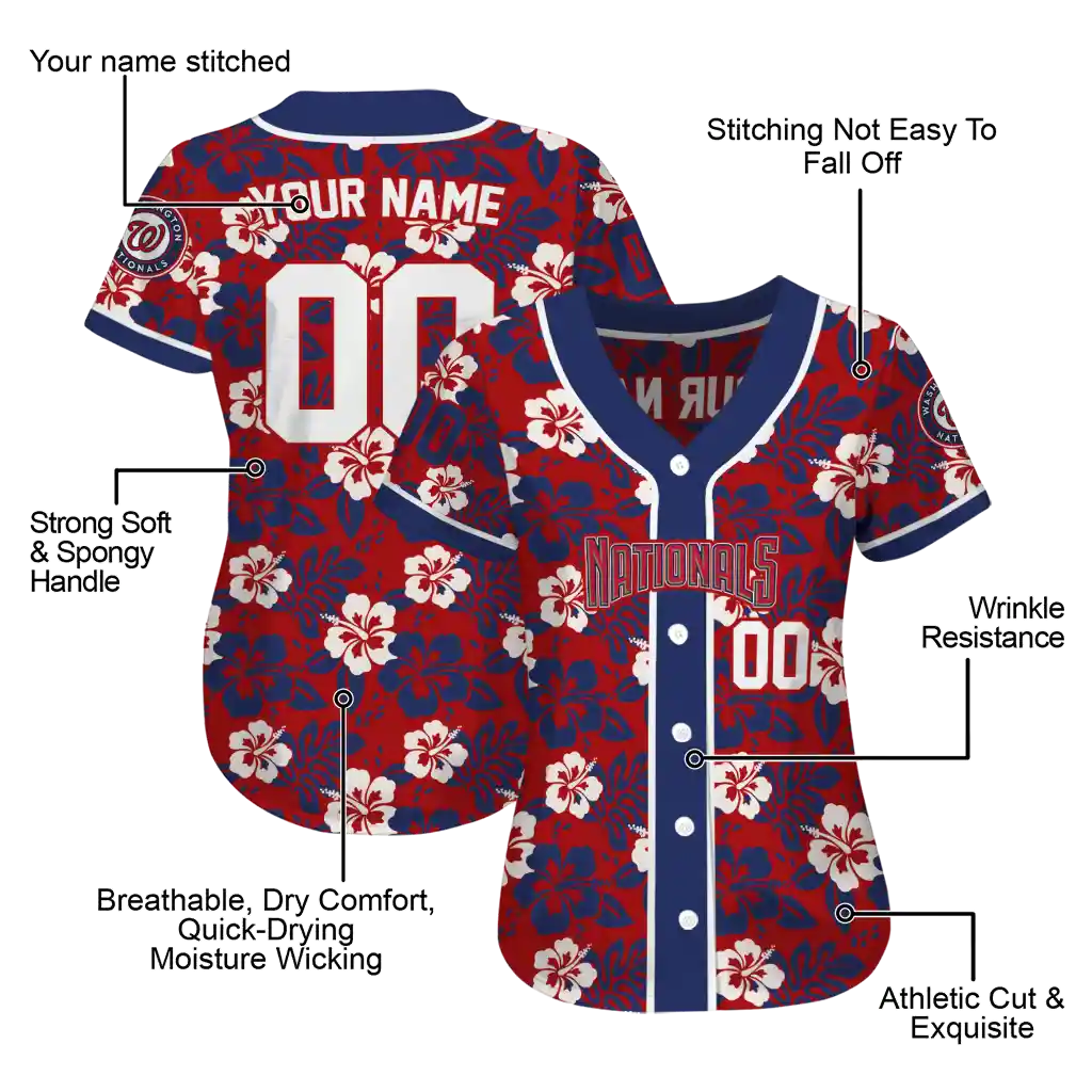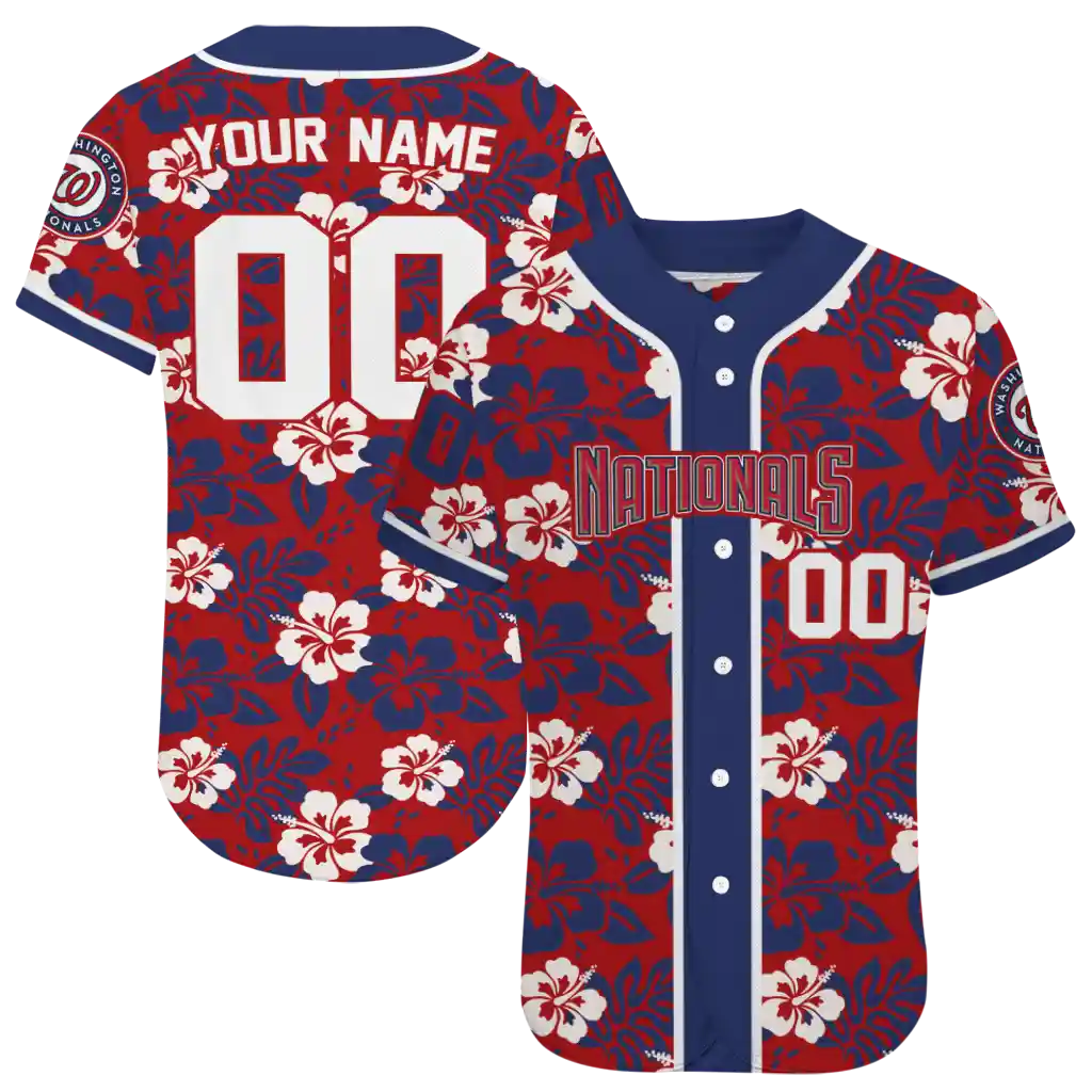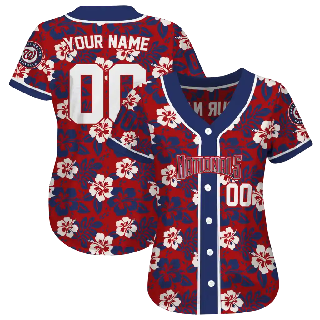 Washington Nationals Jersey – Customized Tropical Hibiscus Blue