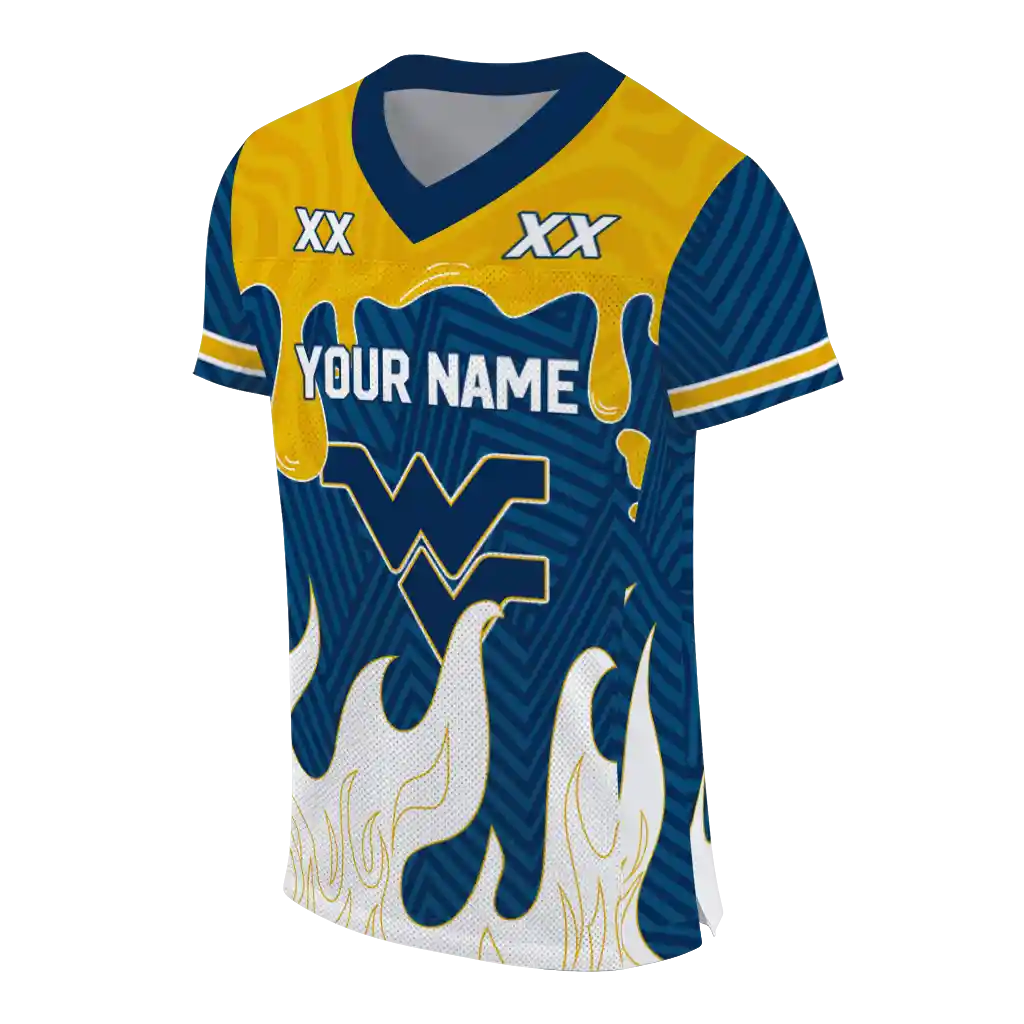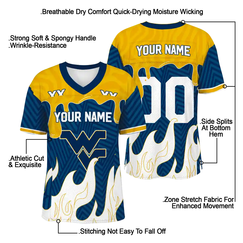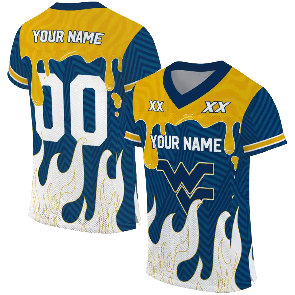 West Virginia Mountaineers Jersey – Customized Dripping Flames Blue White