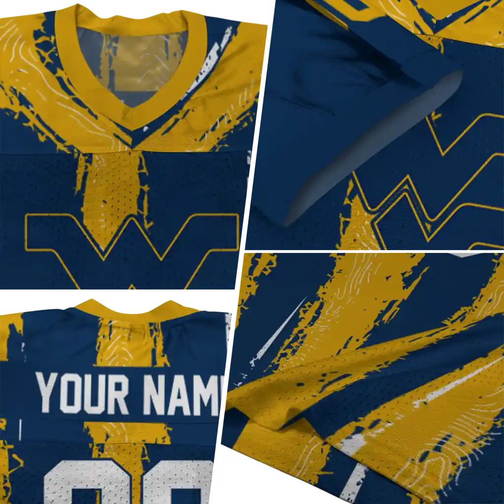 West Virginia Mountaineers Jersey – Customized Striped Texture Blue