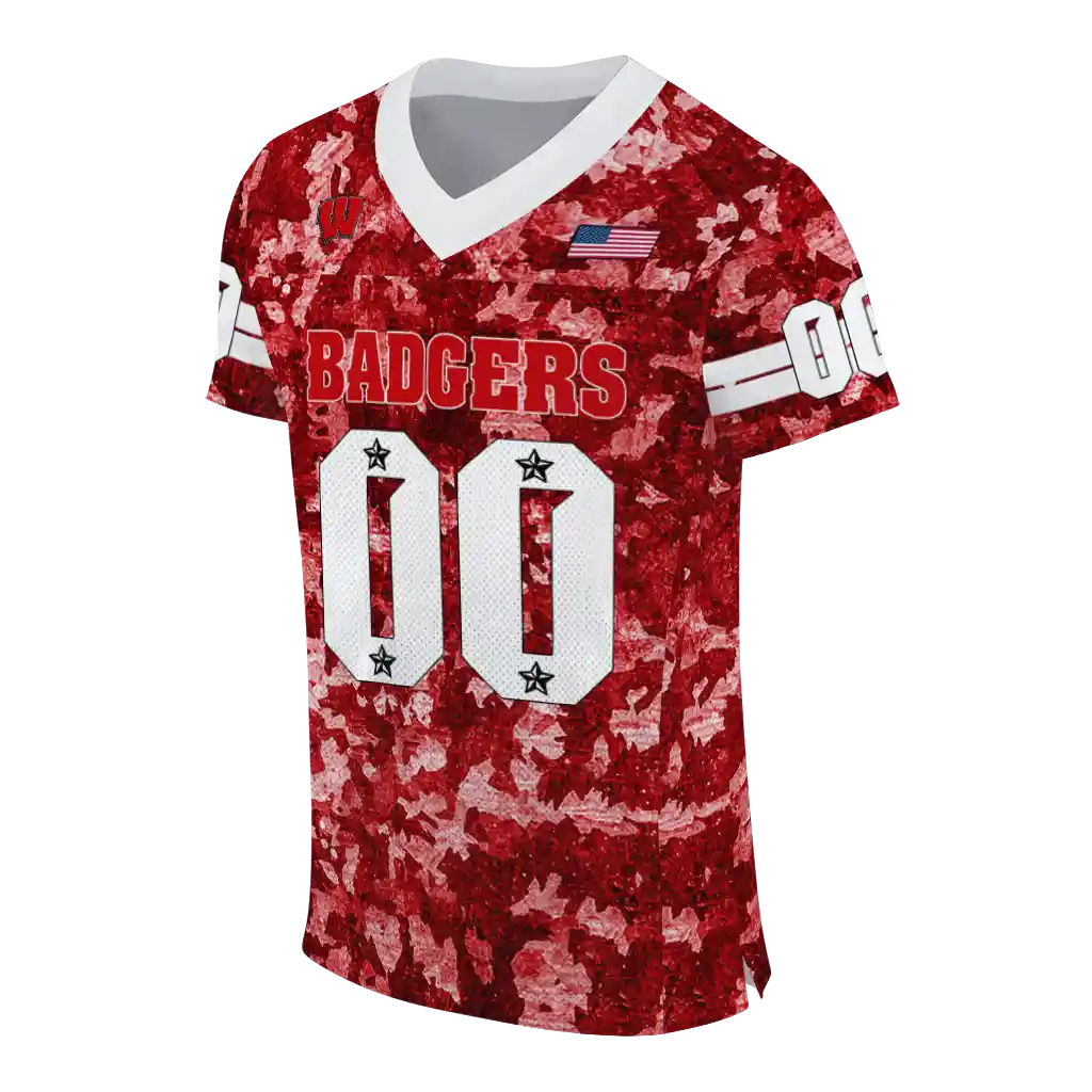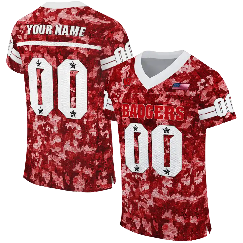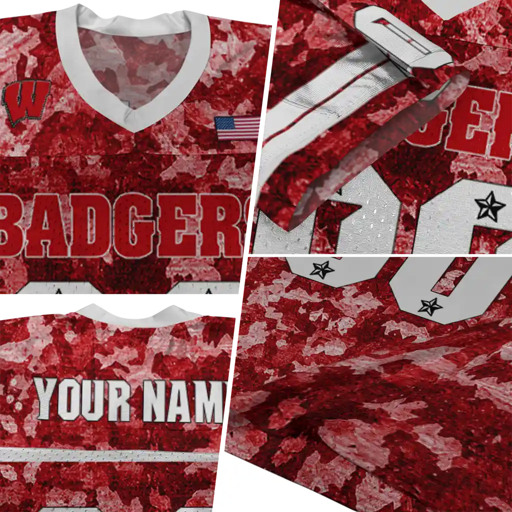 Wisconsin Badgers Jersey – Customized Camouflage Abstract Red