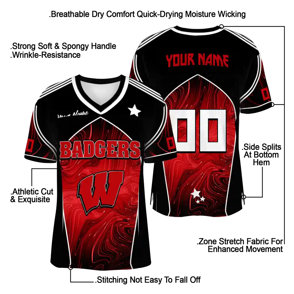 Wisconsin Badgers Jersey – Customized Halftone Slant Red Black