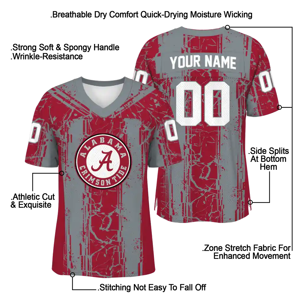 Alabama Crimson Tide Jersey – Personalized Rugged Stripes Crimson