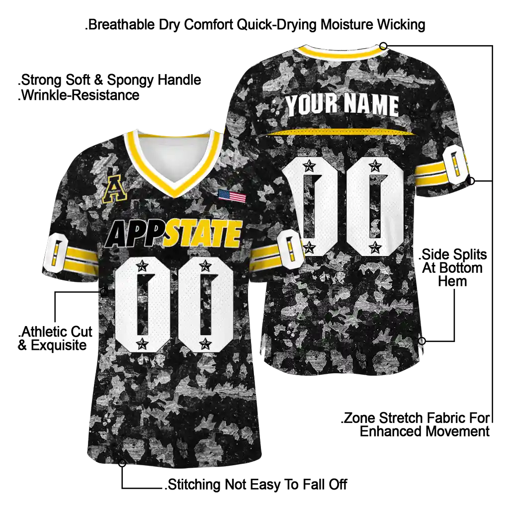 Appalachian State Mountaineers Jersey – Personalized Camouflage Abstract Black