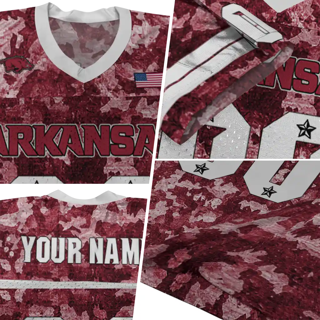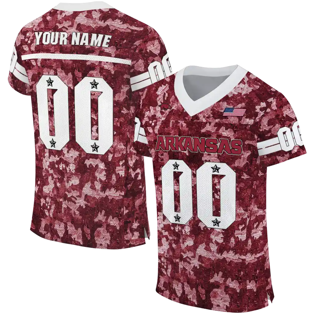 Arkansas Razorbacks Jersey – Personalized Camouflage Abstract Red