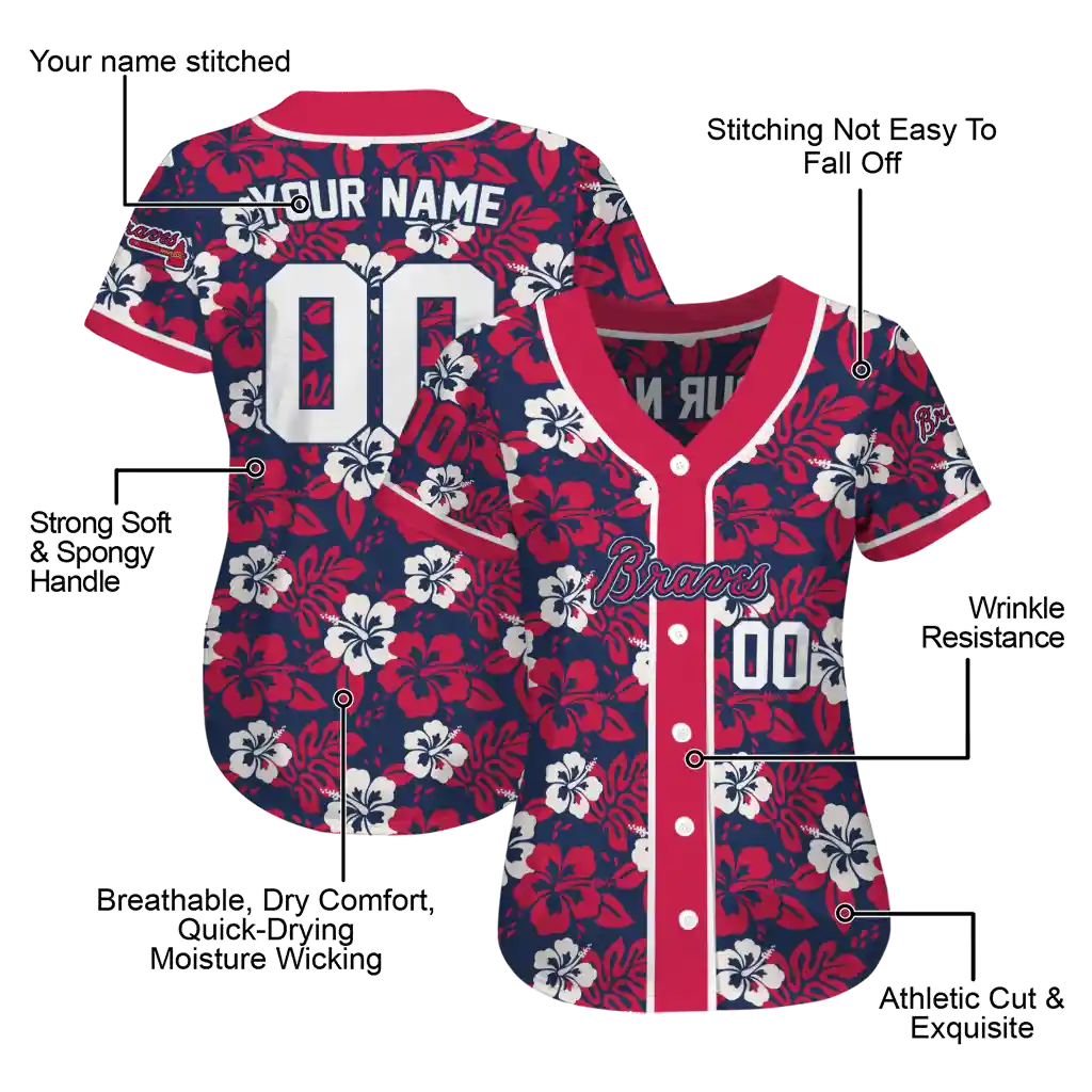 Atlanta Braves Jersey – Personalized Tropical Hibiscus Red