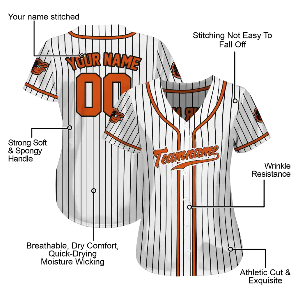 Baltimore Orioles Jersey – Personalized Pinstripe Lines White