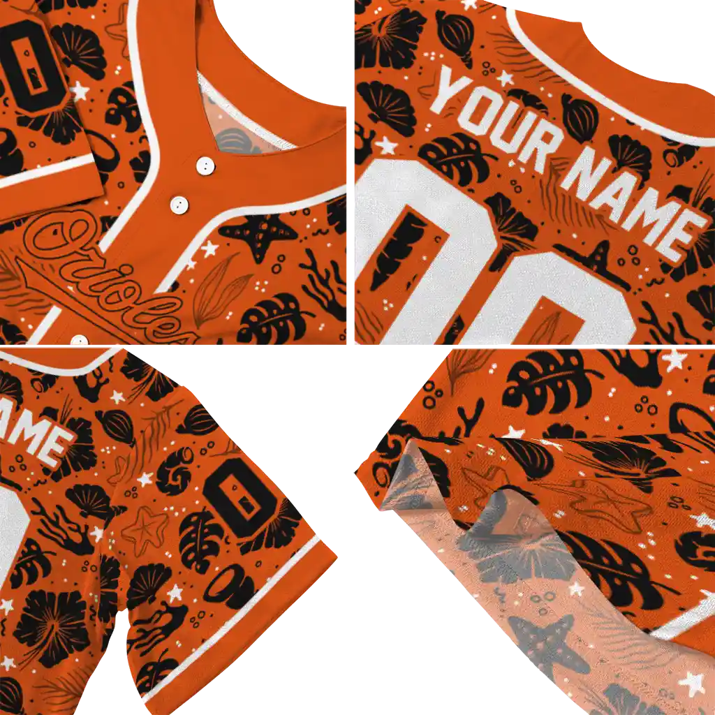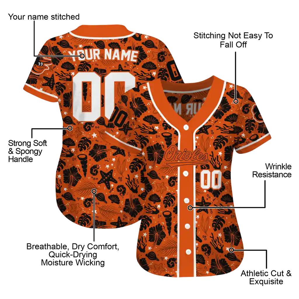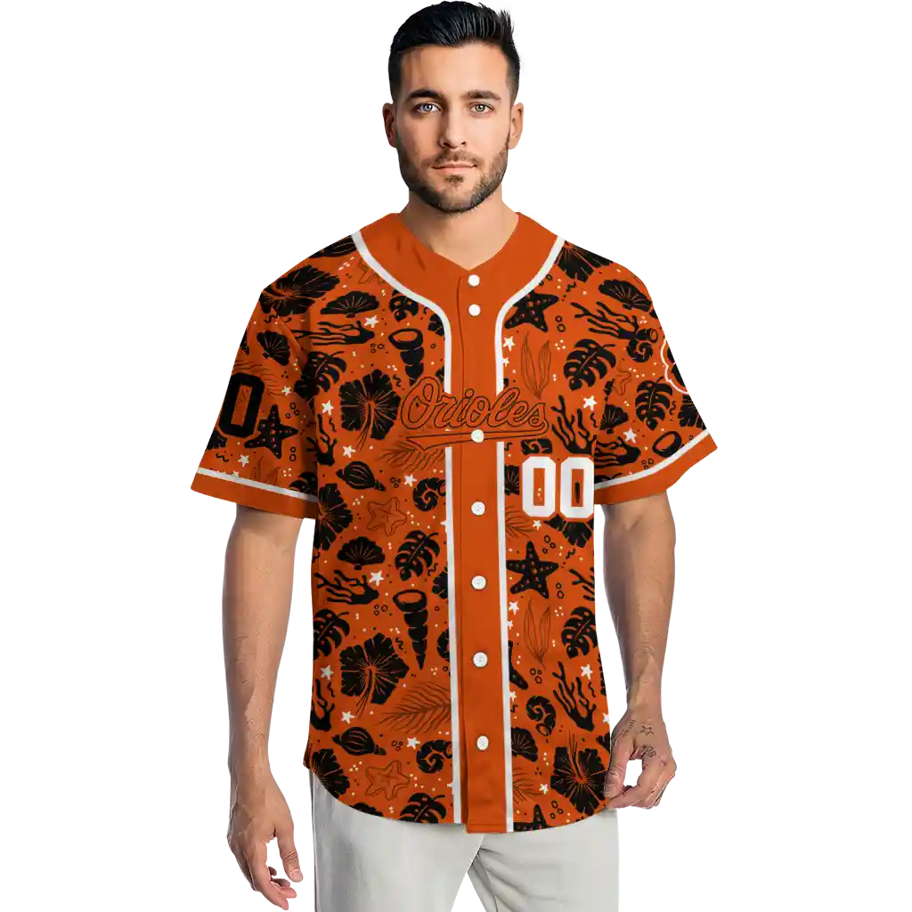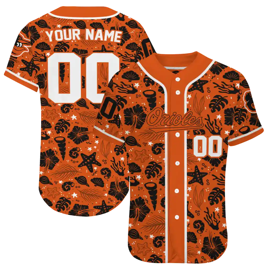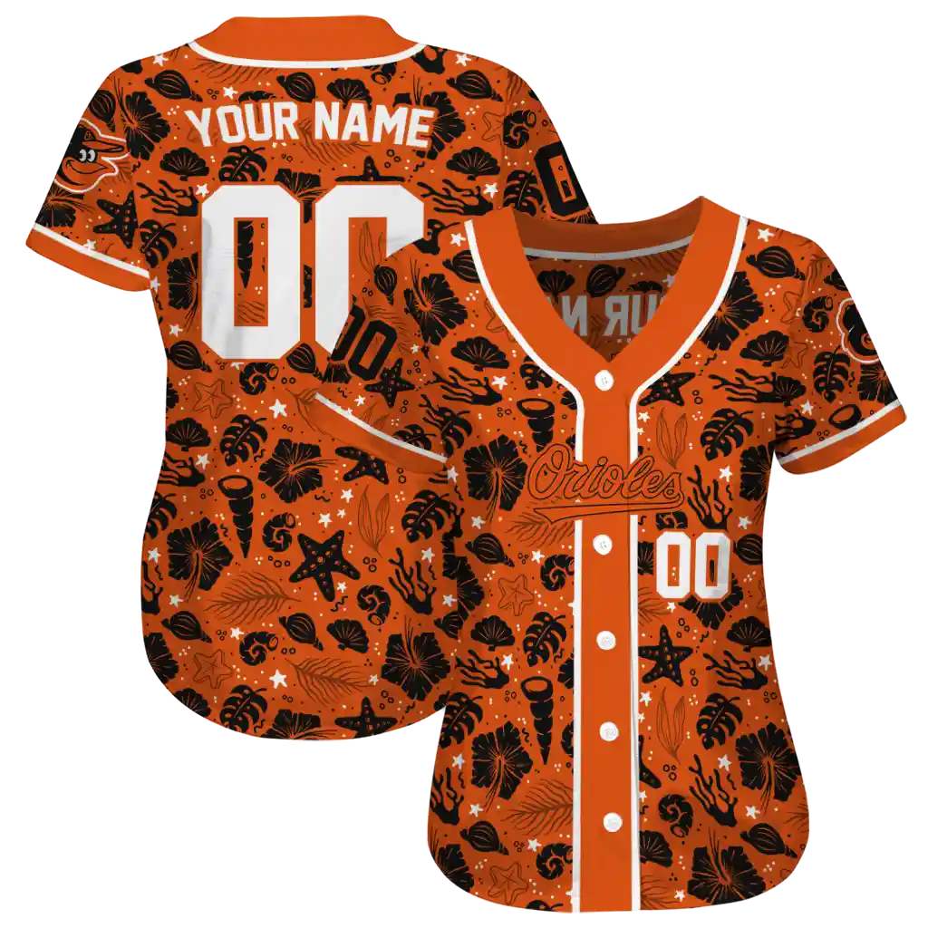 Baltimore Orioles Jersey – Personalized Tropical Hibiscus Seashells Orange
