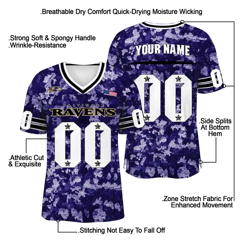 Baltimore Ravens Jersey – Personalized Camouflage Abstract Purple