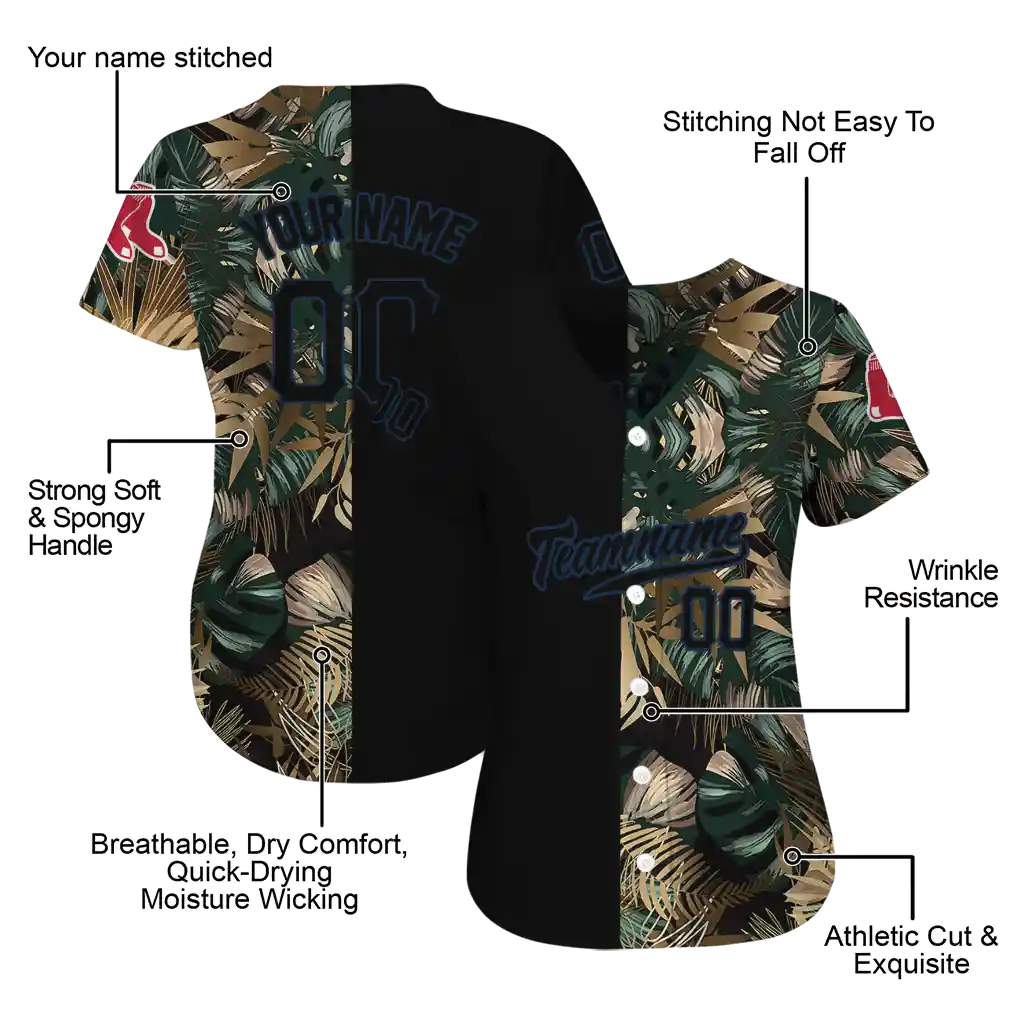 Boston Red Sox Jersey – Personalized Tropical Foliage Black