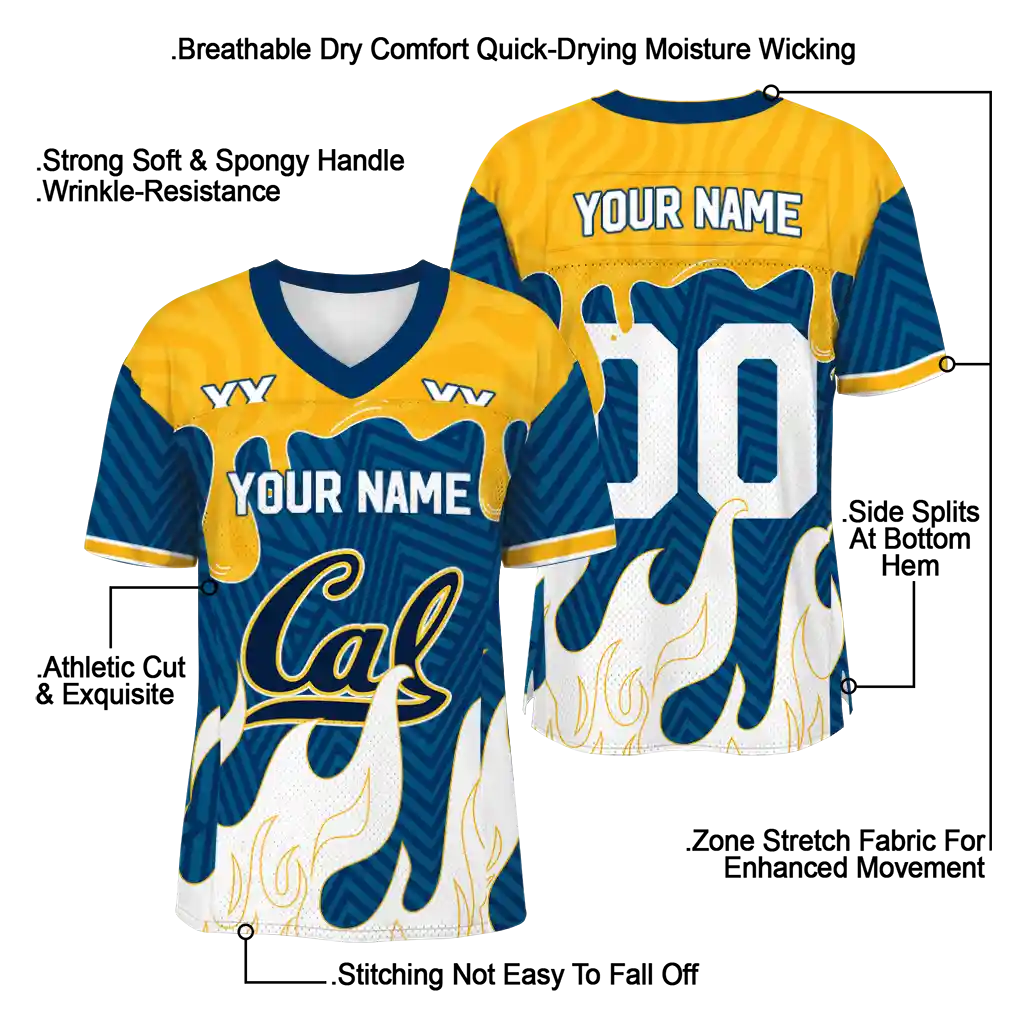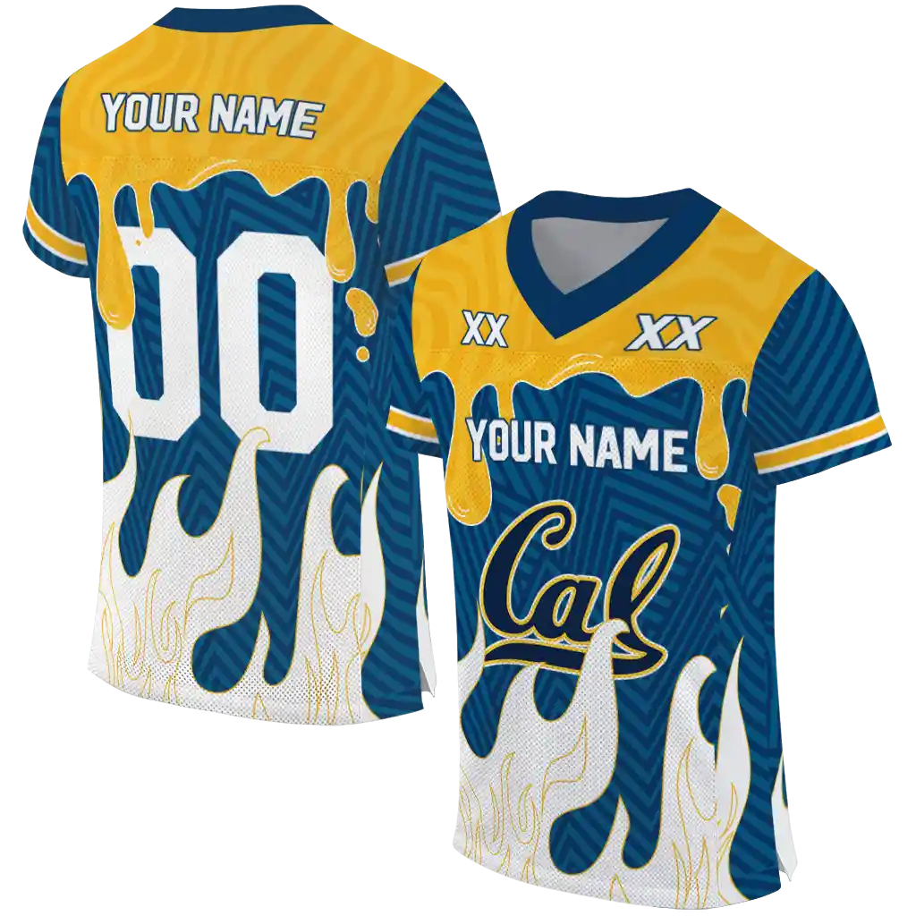 California Golden Bears Jersey – Personalized Dripping Flames Blue White
