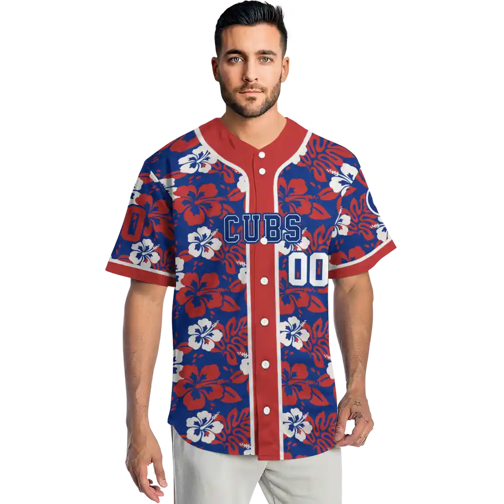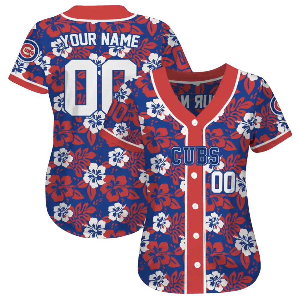 Chicago Cubs Jersey – Personalized Tropical Hibiscus Red