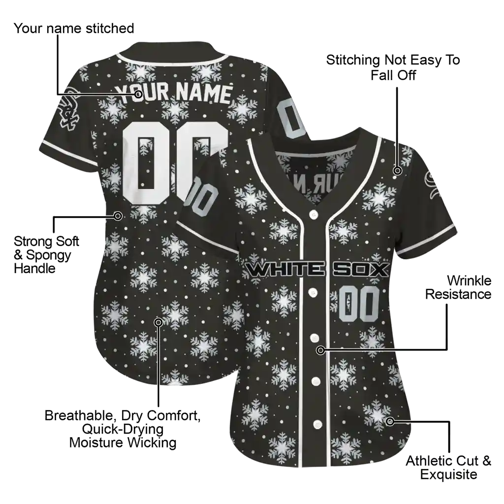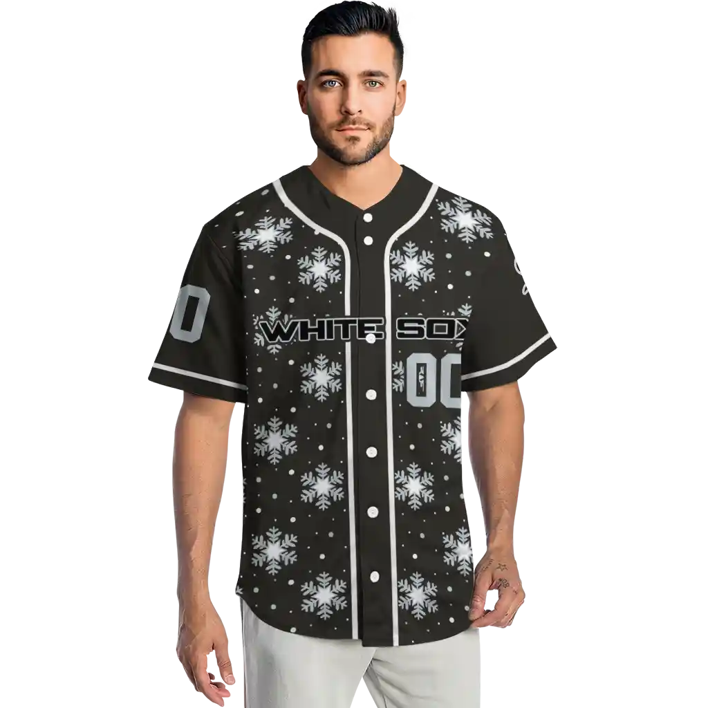 Chicago White Sox Jersey – Personalized Snowflake Festive Black