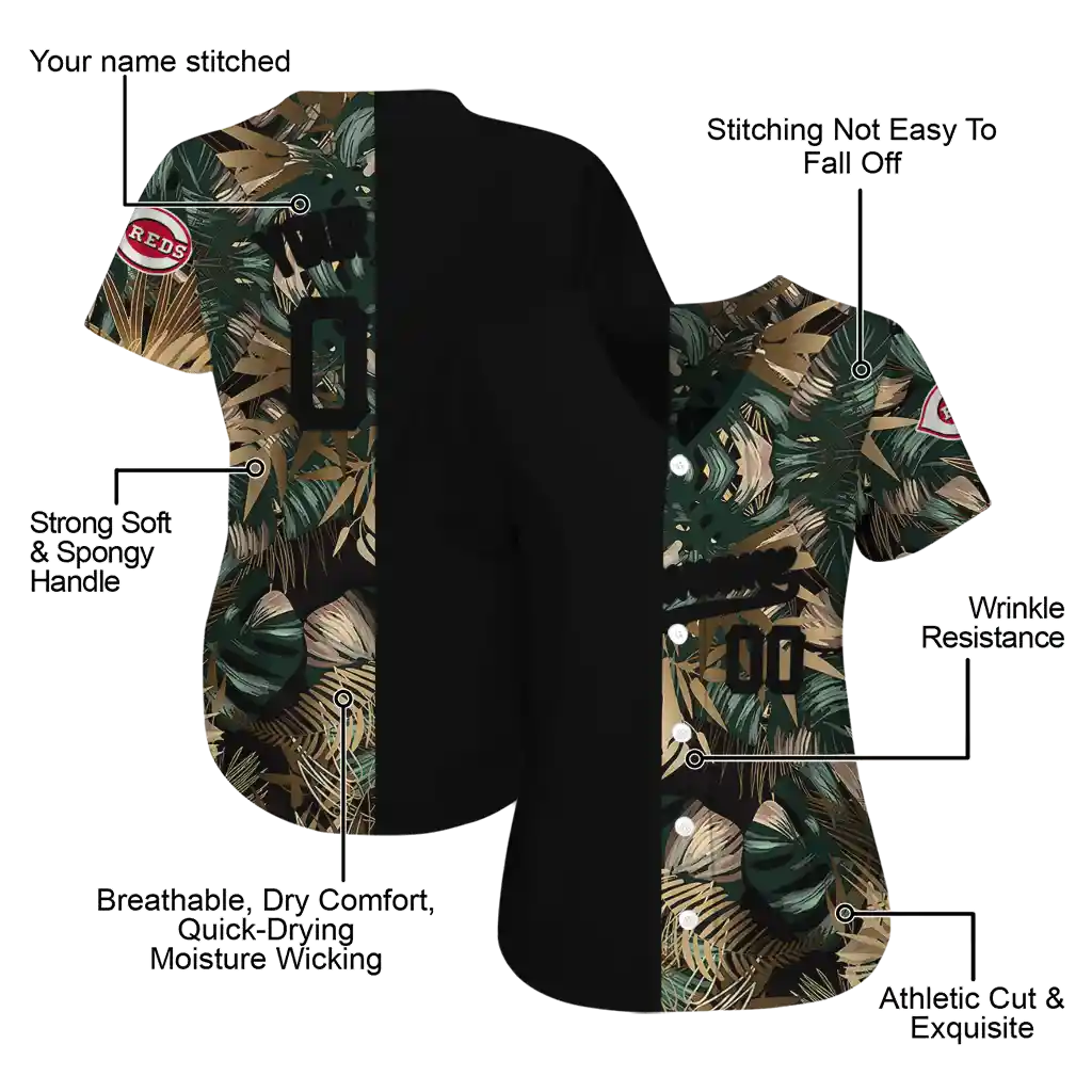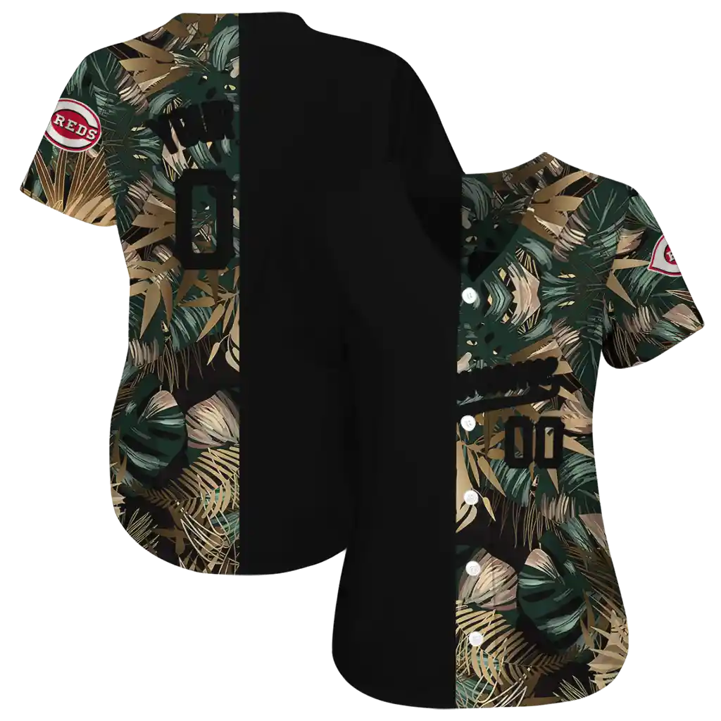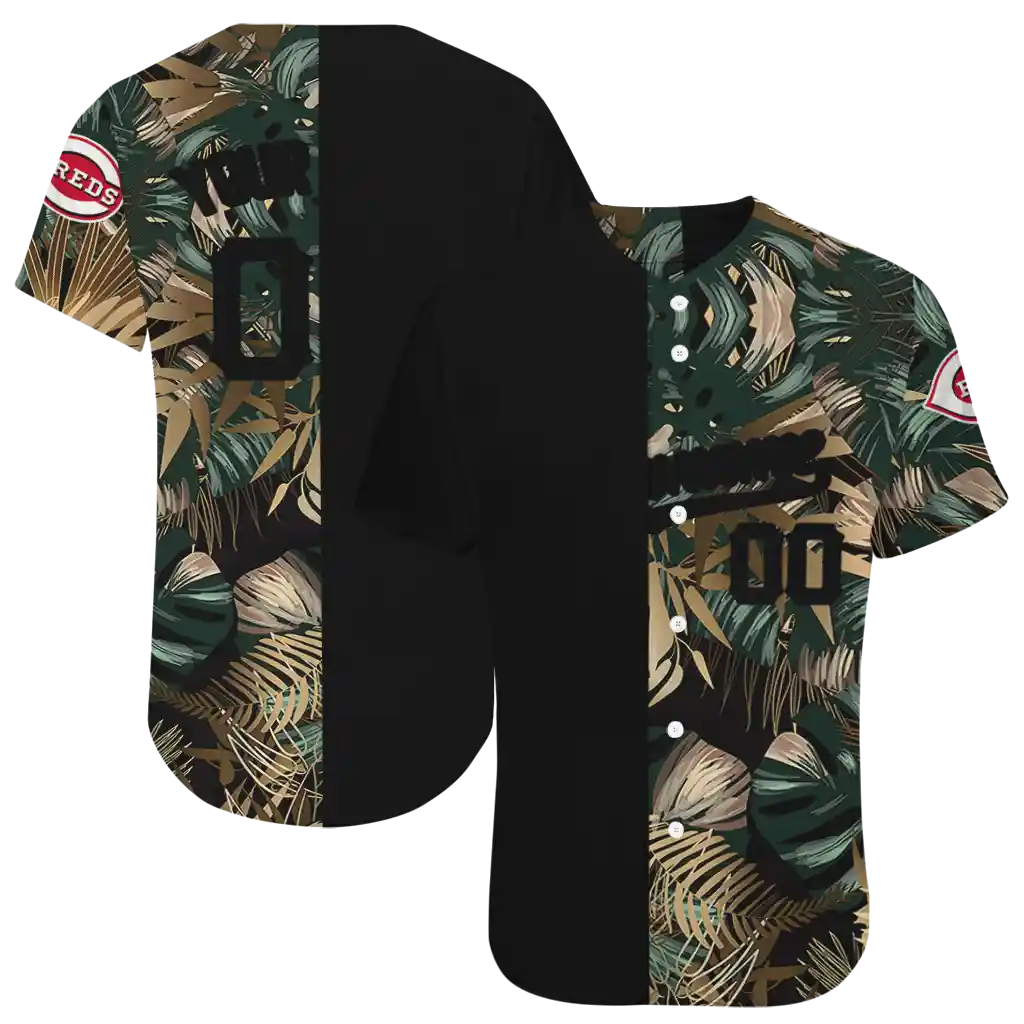Cincinnati Reds Jersey – Personalized Tropical Foliage Black
