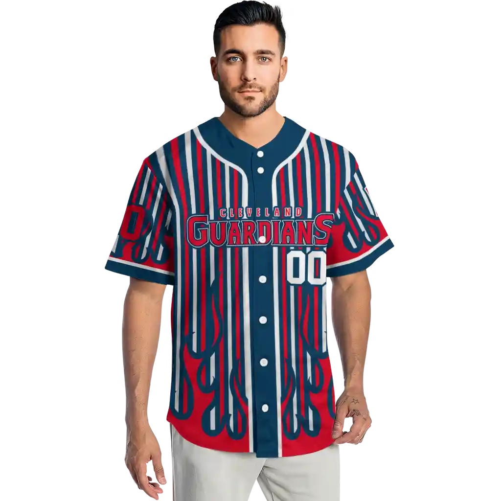 Cleveland Guardians Blazing Jersey – Personalized Stripes Navy Blue