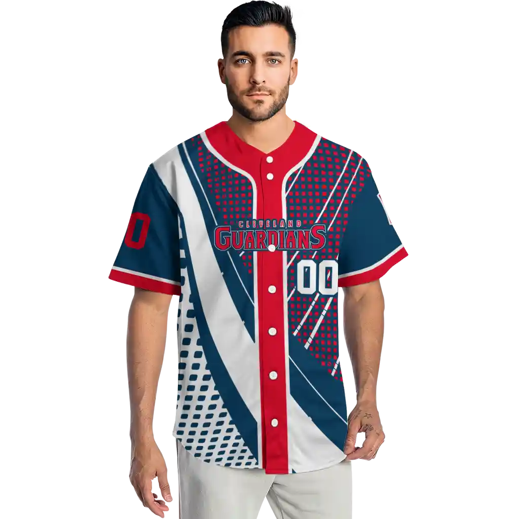 Cleveland Guardians Curved Jersey – Personalized Stripes Navy Blue White