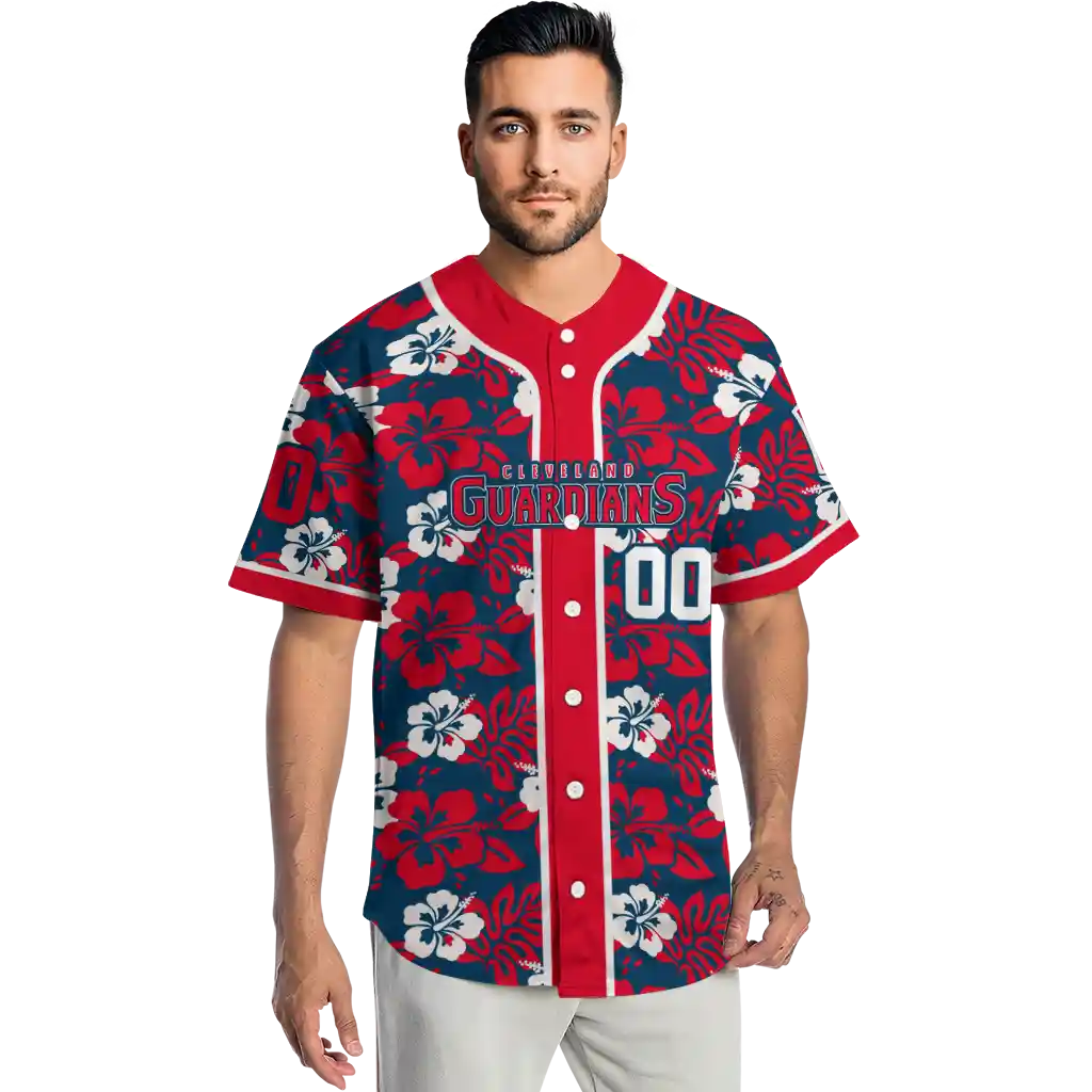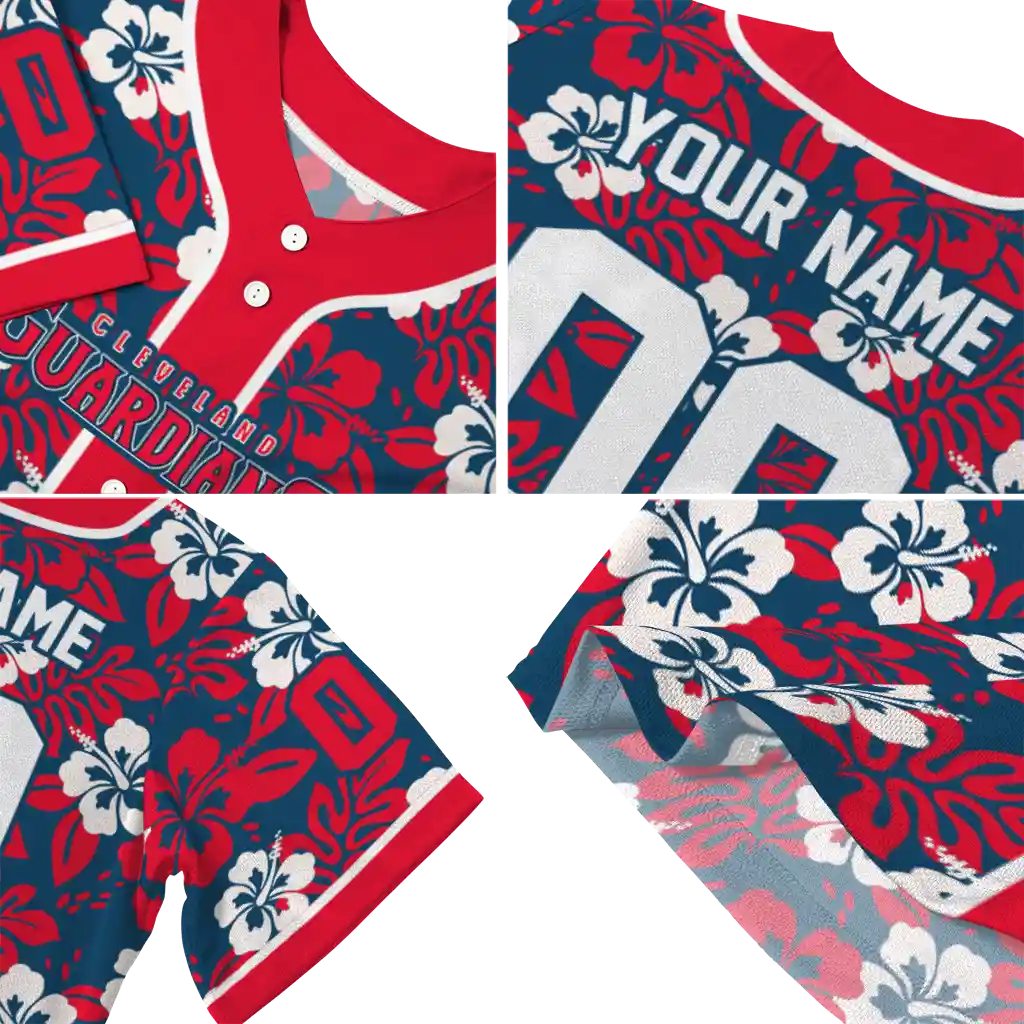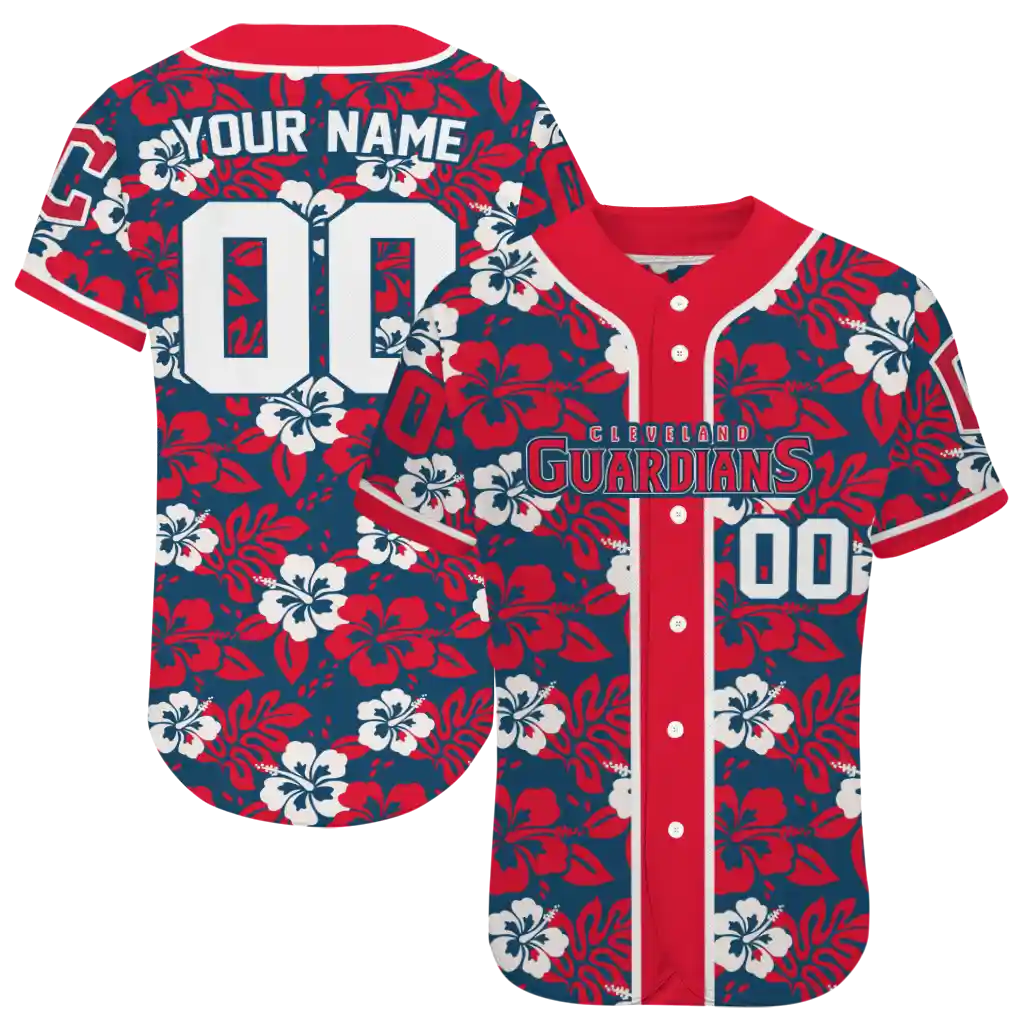 Cleveland Guardians Jersey – Personalized Tropical Hibiscus Red