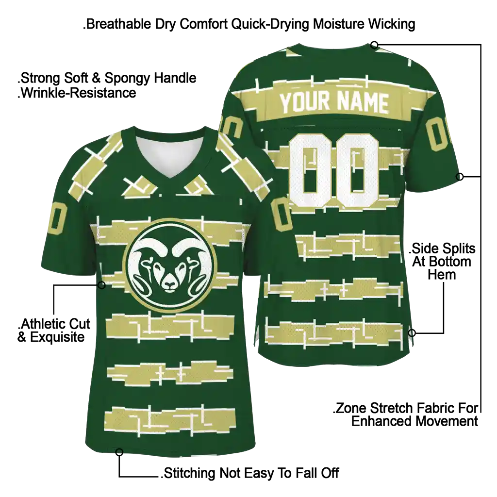 Colorado State Rams Jersey – Personalized Layered Grids Green