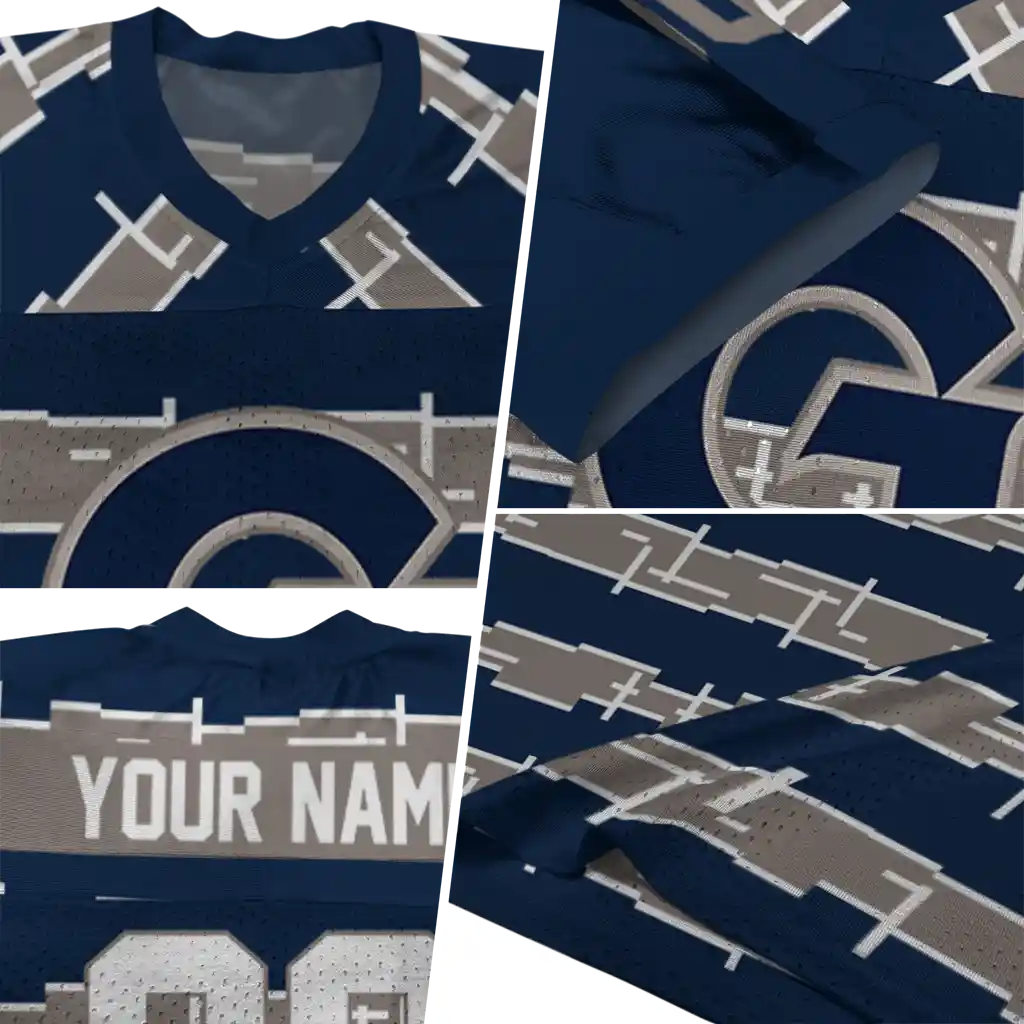 Georgetown Hoyas Jersey – Personalized Layered Grids Blue