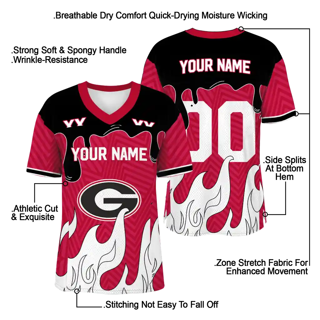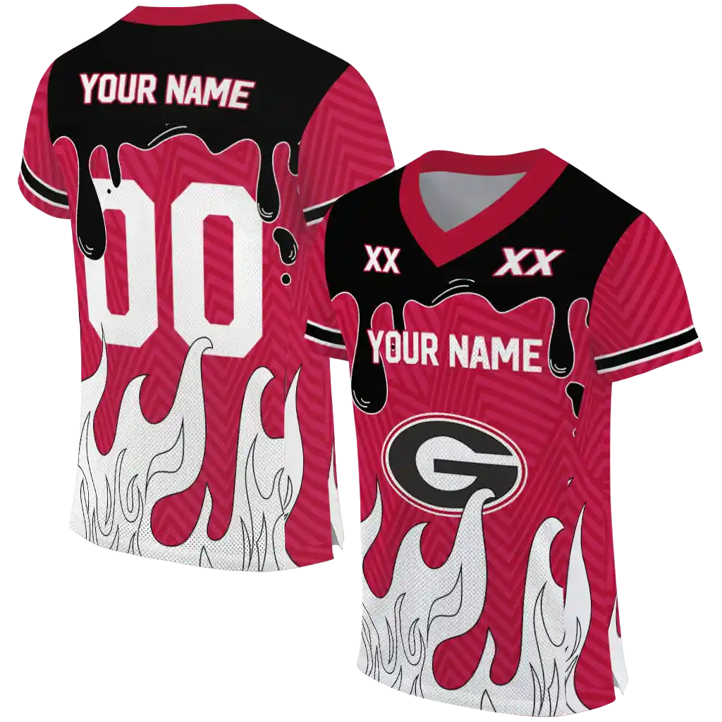 Georgia Bulldogs Jersey – Personalized Dripping Flames Red White