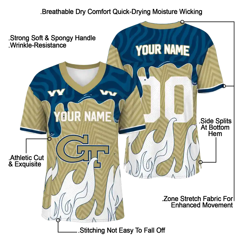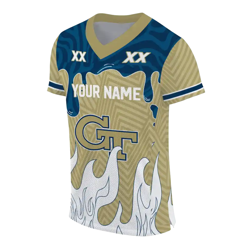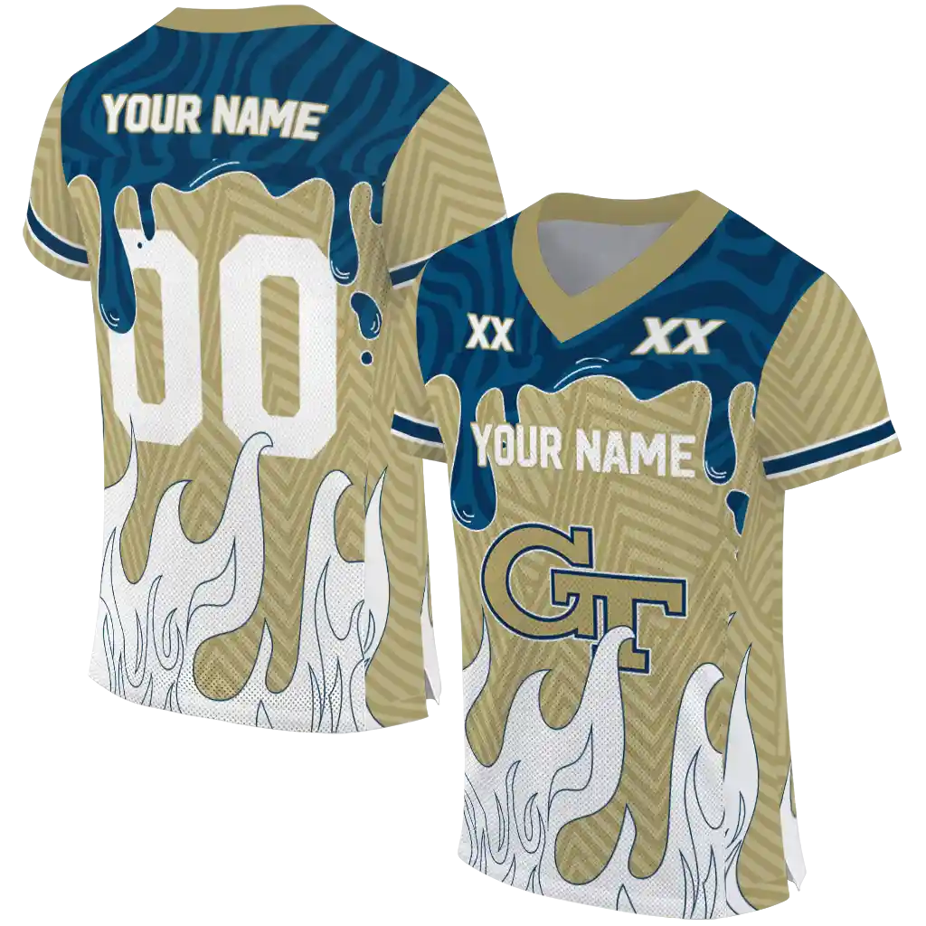 Georgia Tech Yellow Jackets Jersey – Personalized Dripping Flames Gold White