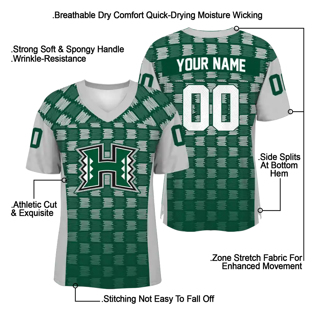 Hawaii Rainbow Warriors Jersey – Personalized Stacked Rectangle Green