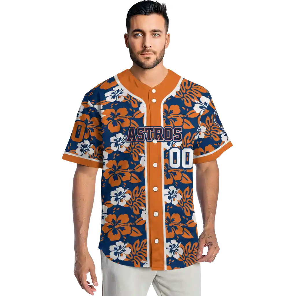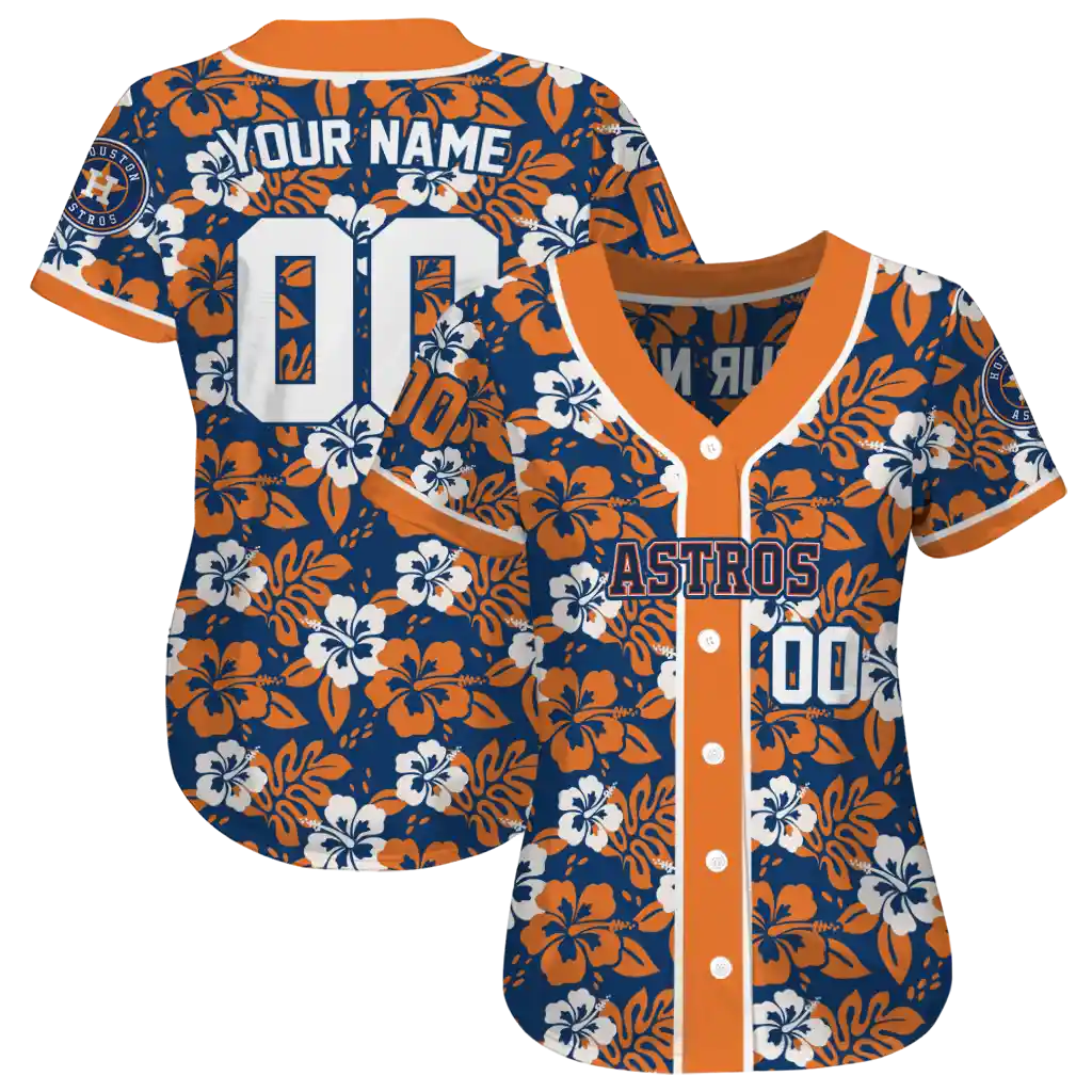 Houston Astros Jersey – Personalized Tropical Hibiscus Orange