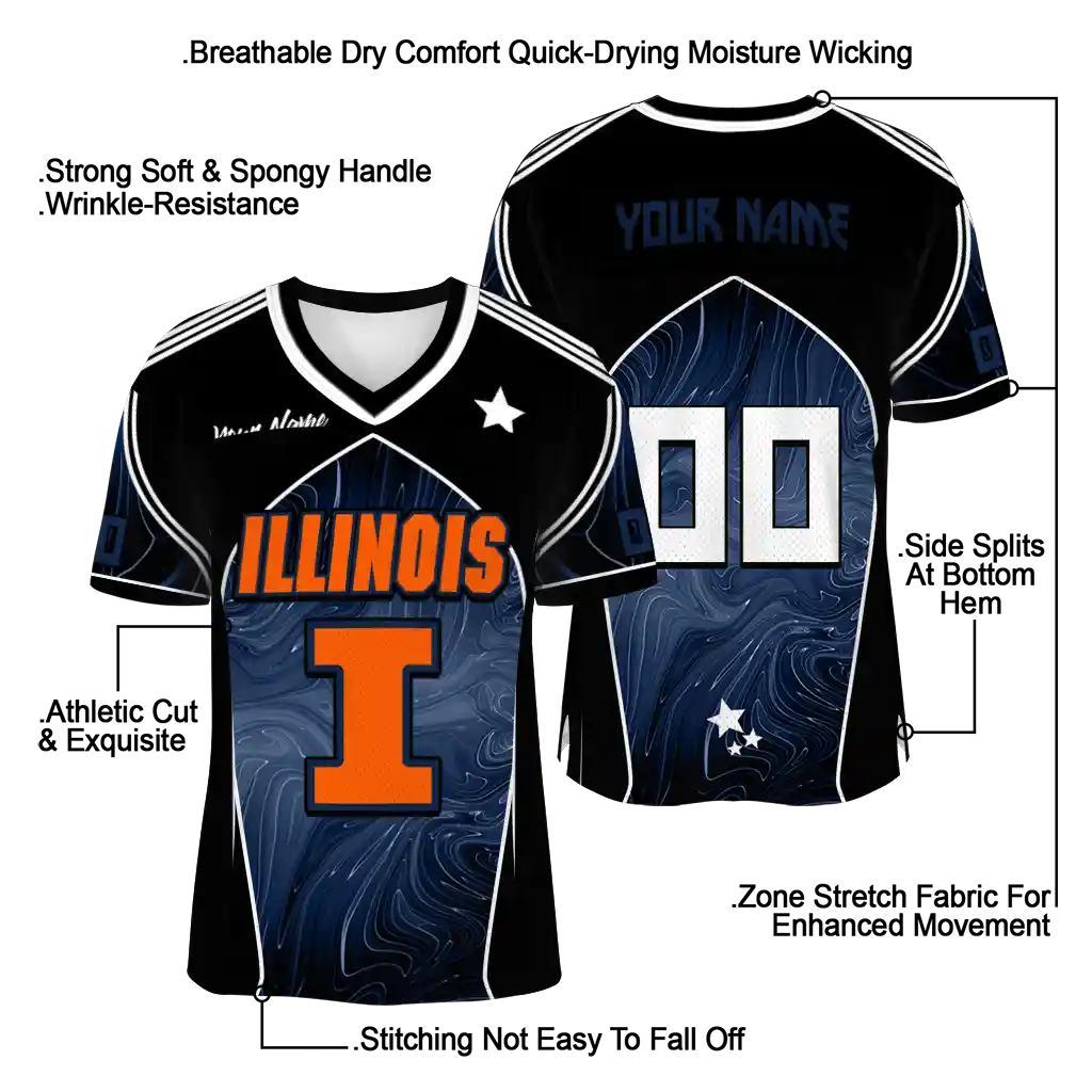 Illinois Fighting Illini Jersey – Personalized Halftone Slant Blue Black