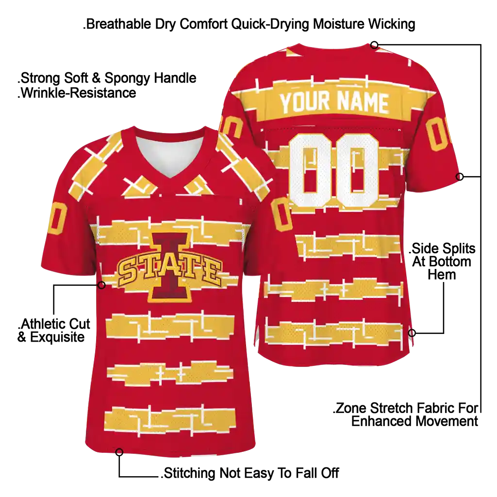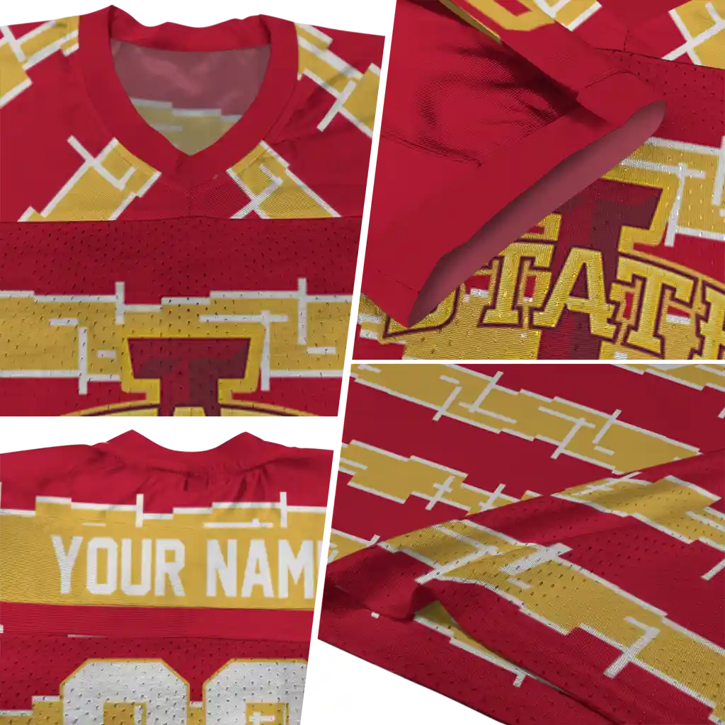 Iowa State Cyclones Jersey – Personalized Layered Grids Red