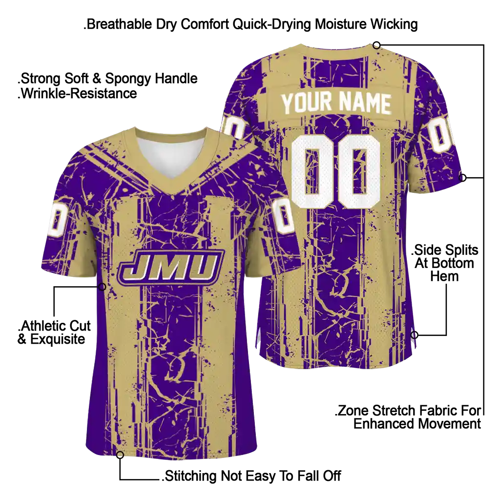 James Madison Dukes Jersey – Personalized Rugged Stripes Purple