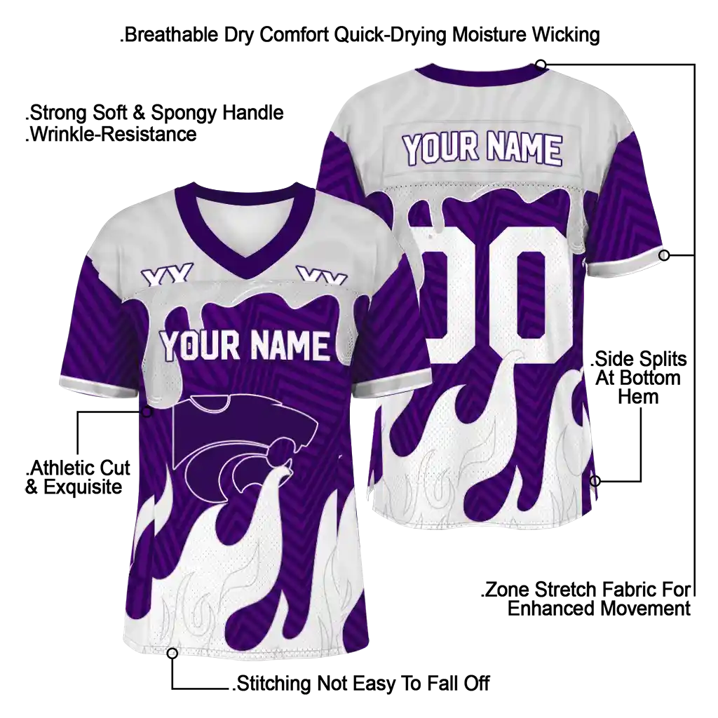 Kansas State Wildcats Jersey – Personalized Dripping Flames Purple White