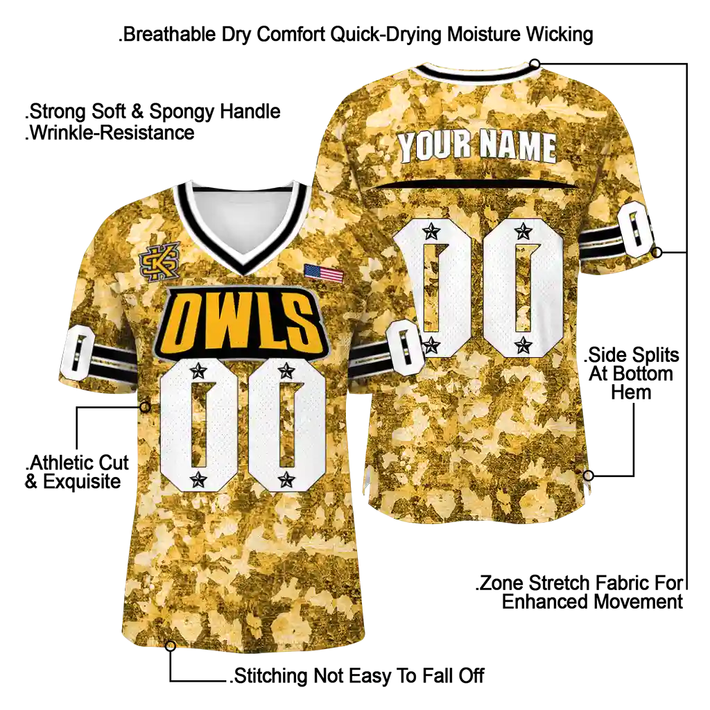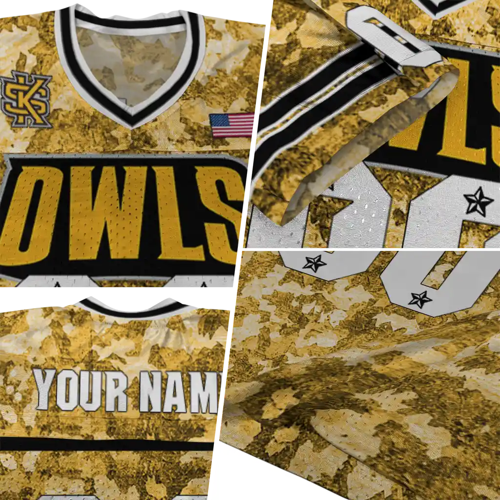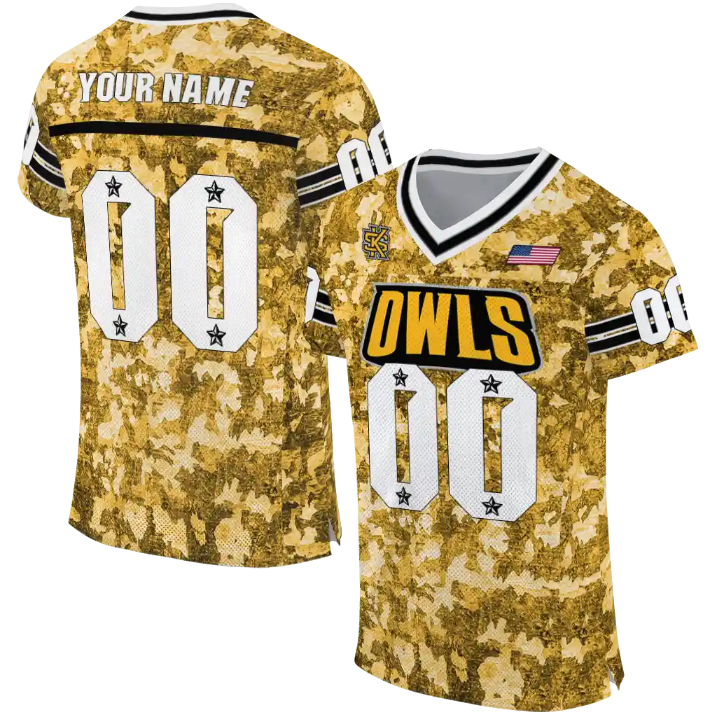 Kennesaw State Owls Jersey – Personalized Camouflage Abstract Gold