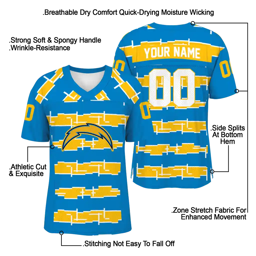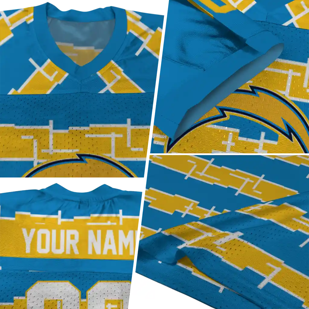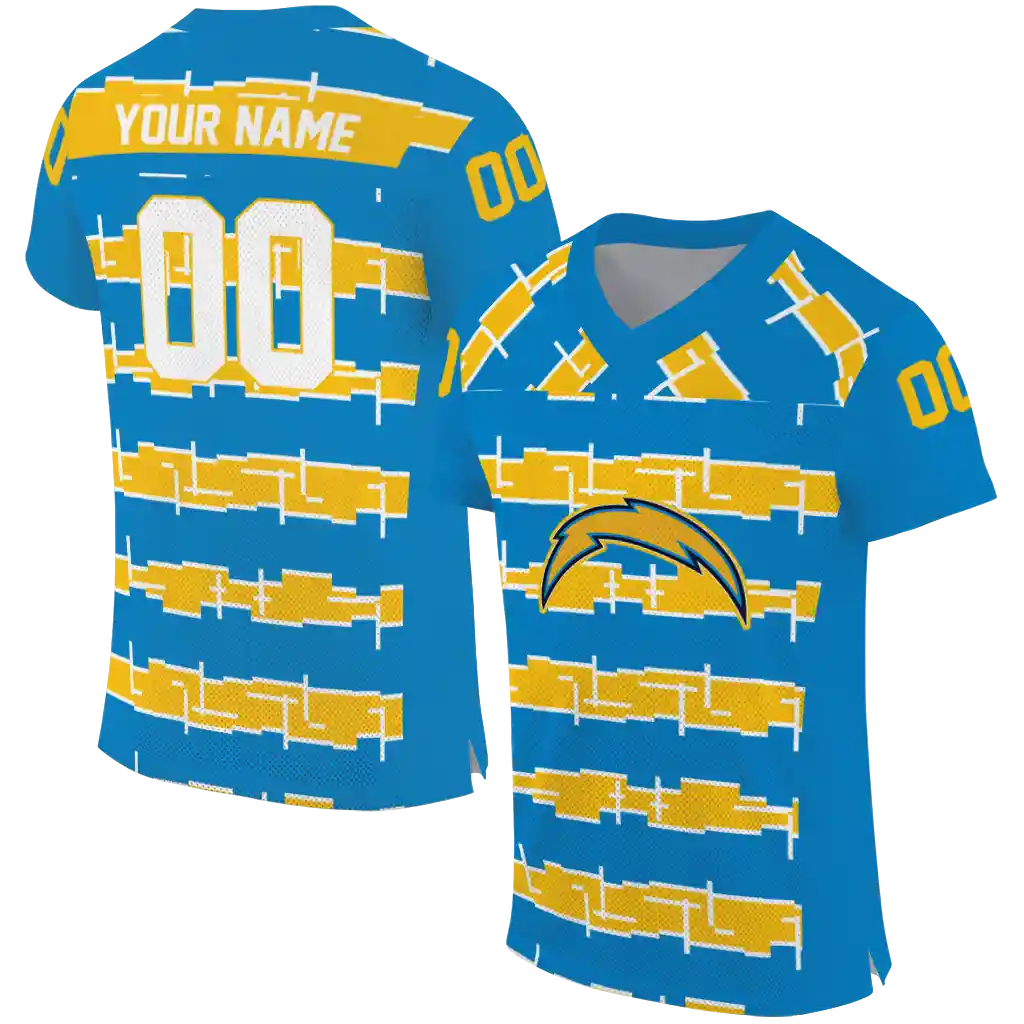 Los Angeles Chargers Jersey – Personalized Layered Grids Blue
