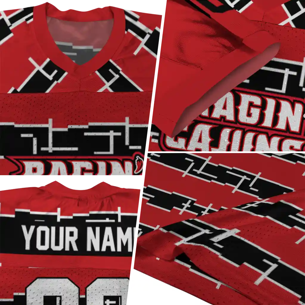 Louisiana Ragin’ Cajuns Jersey – Personalized Layered Grids Red