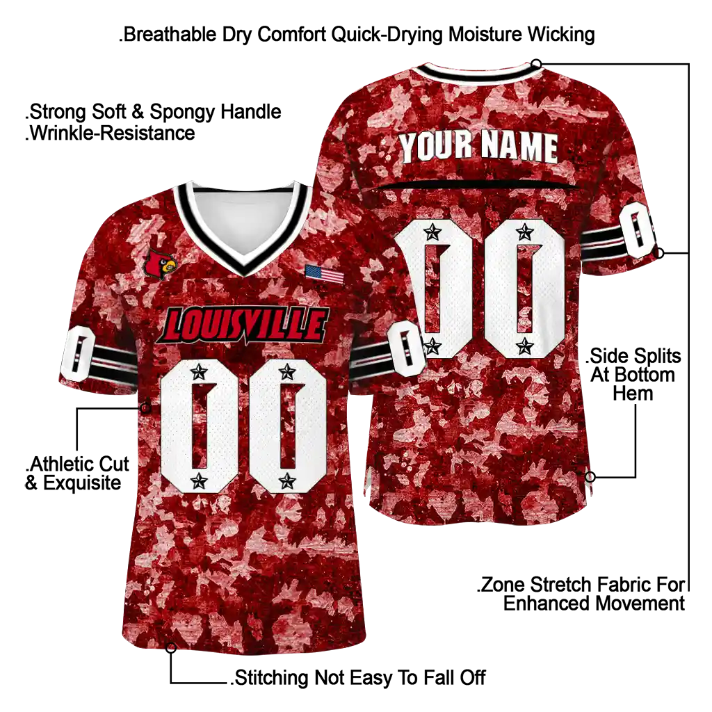 Louisville Cardinals Jersey – Personalized Camouflage Abstract Red