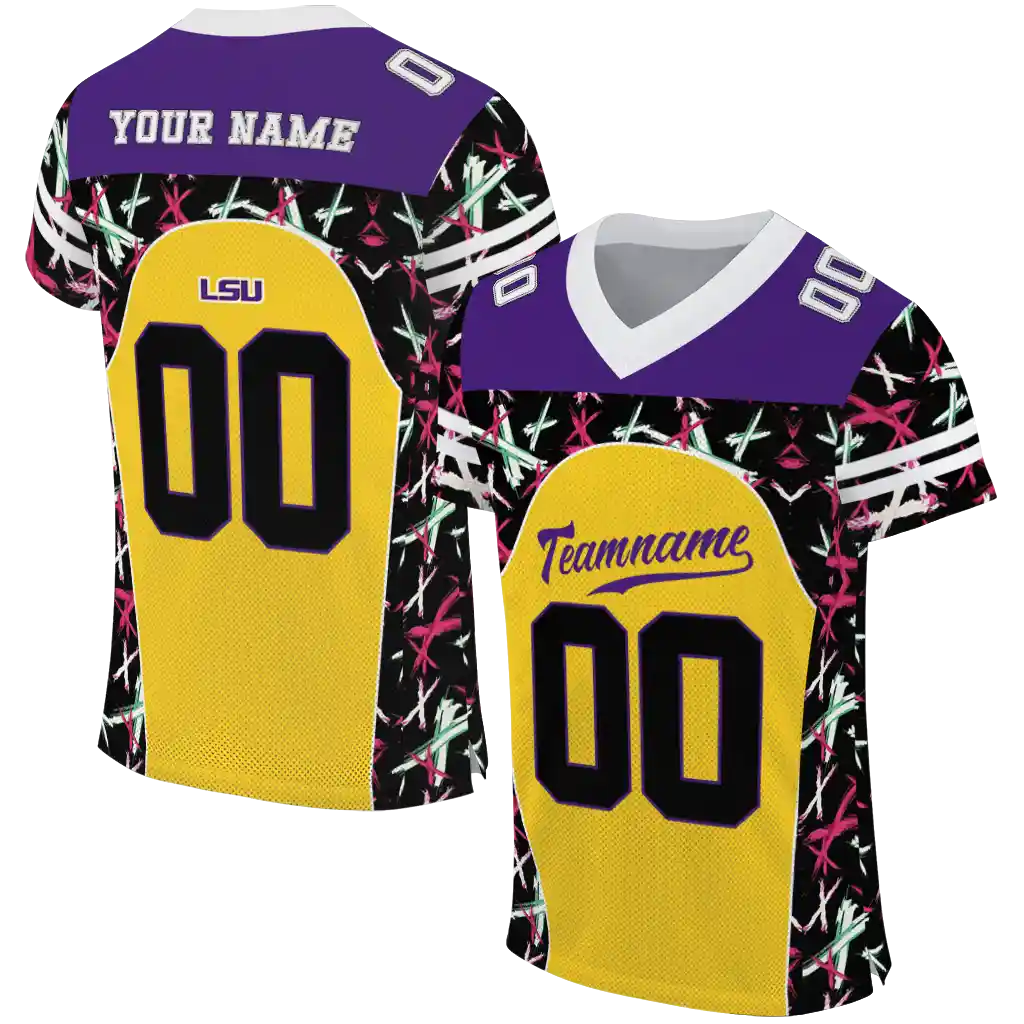 LSU Tigers Brushstroke Jersey – Personalized Xs Gold Black