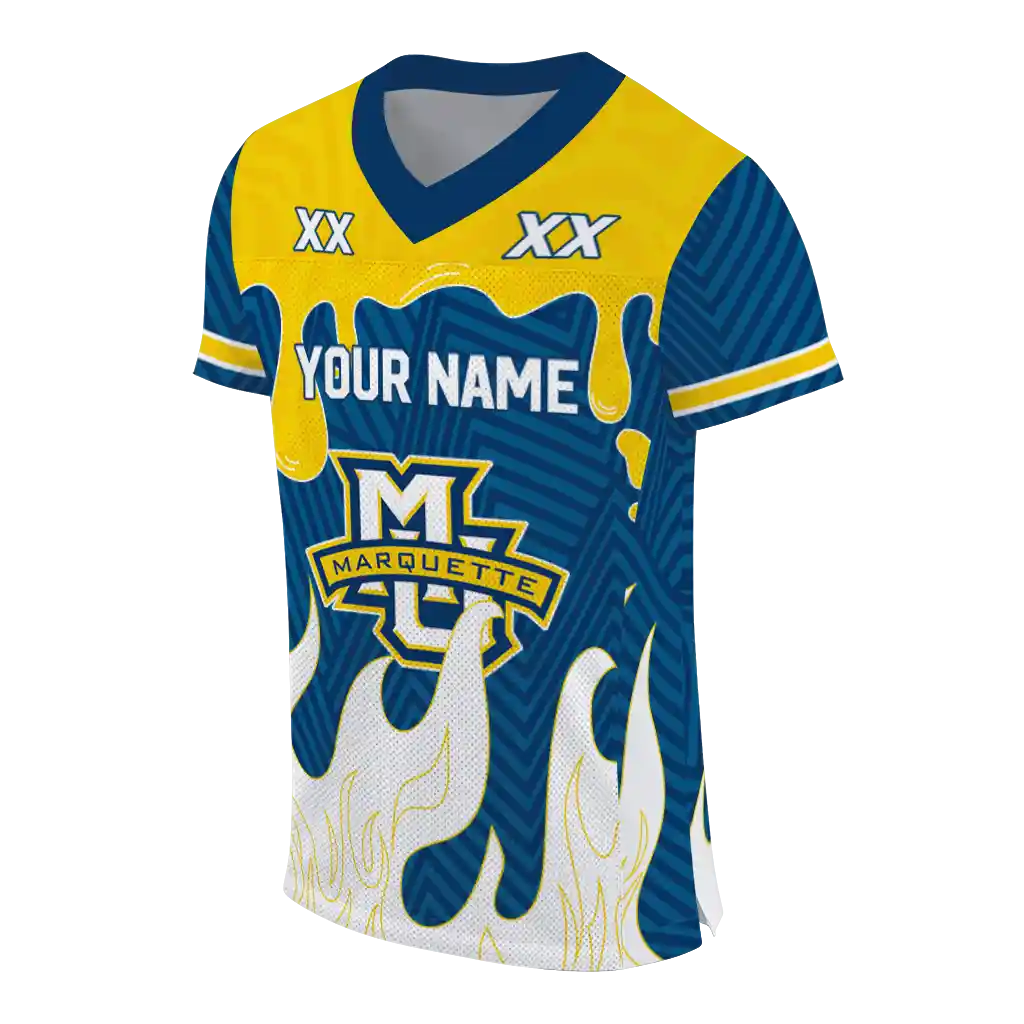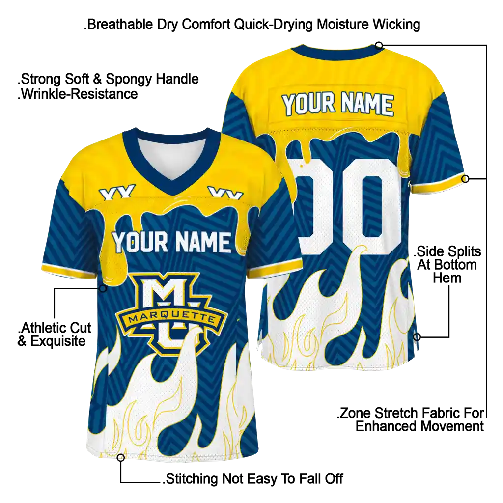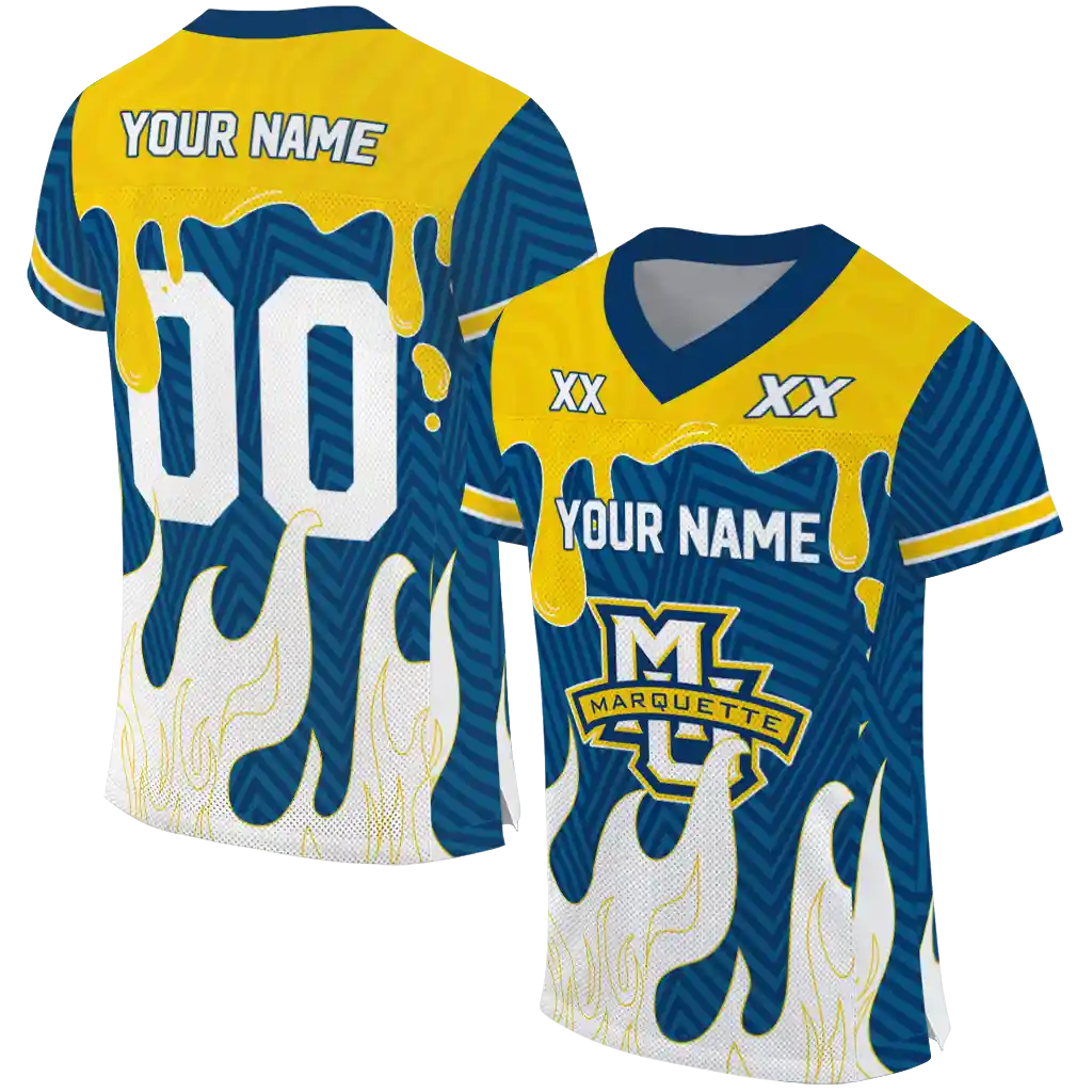 Marquette Golden Eagles Jersey – Personalized Dripping Flames Blue White