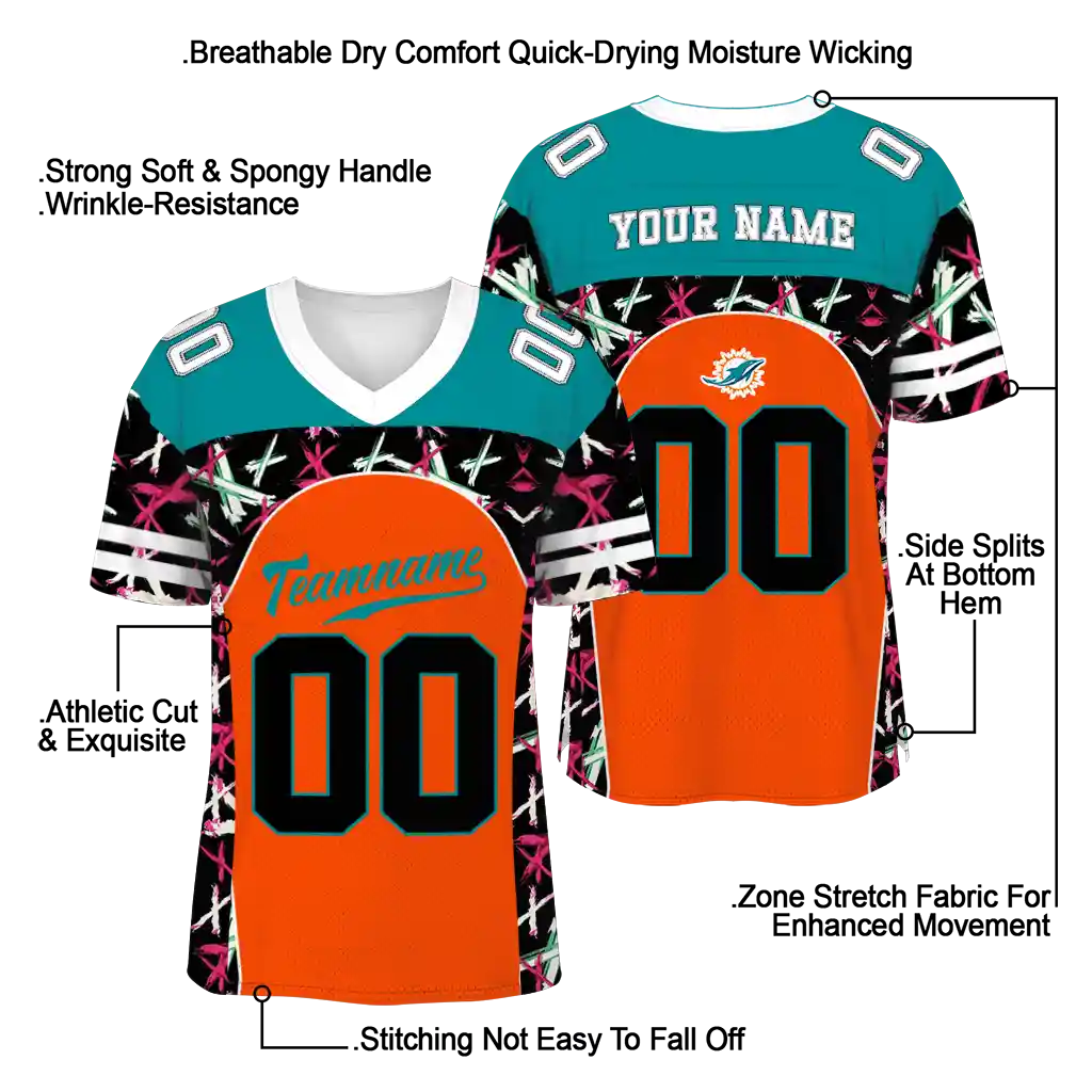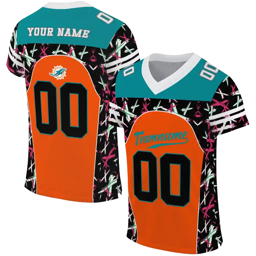 Miami Dolphins Brushstroke Jersey – Personalized Xs Orange Black
