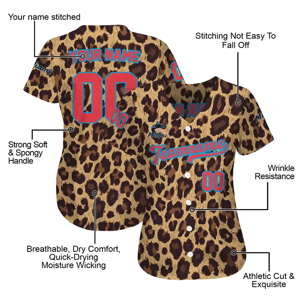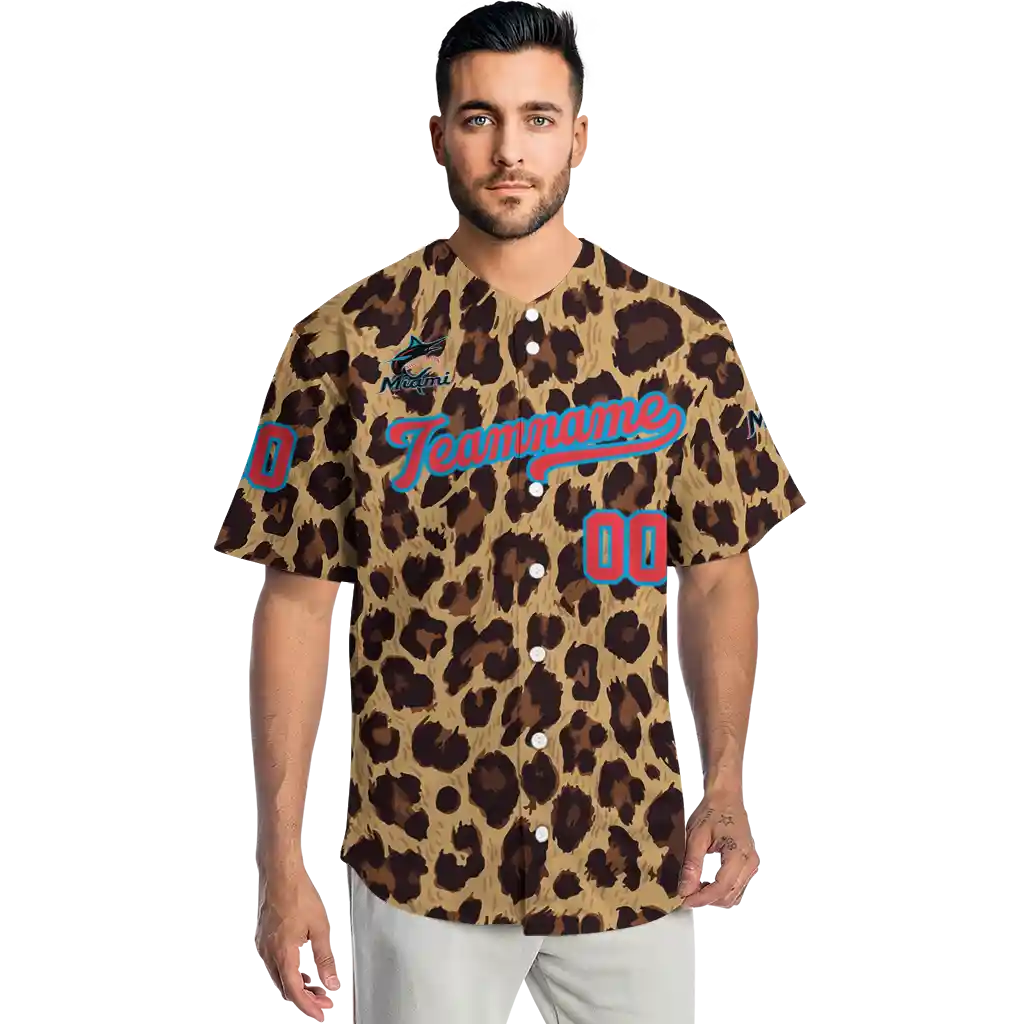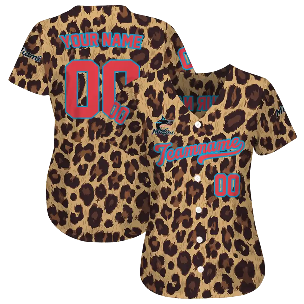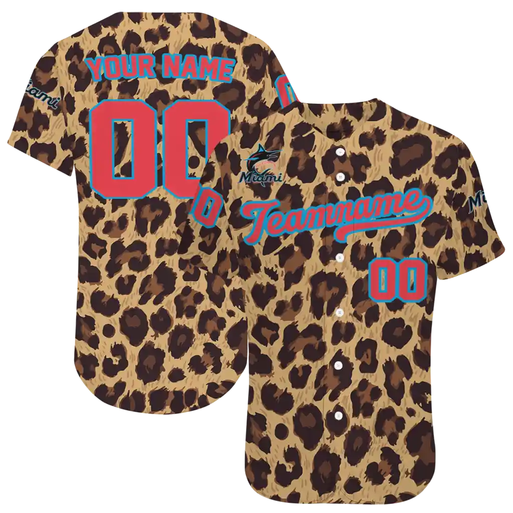Miami Marlins Jersey – Personalized Leopard Spot Beige and Brown